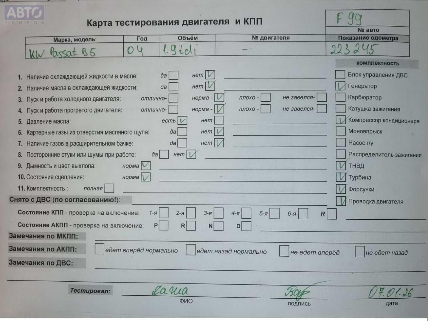 | Марка / Модель / Год: | Volkswagen Passat B5+ (GP) 2004 |