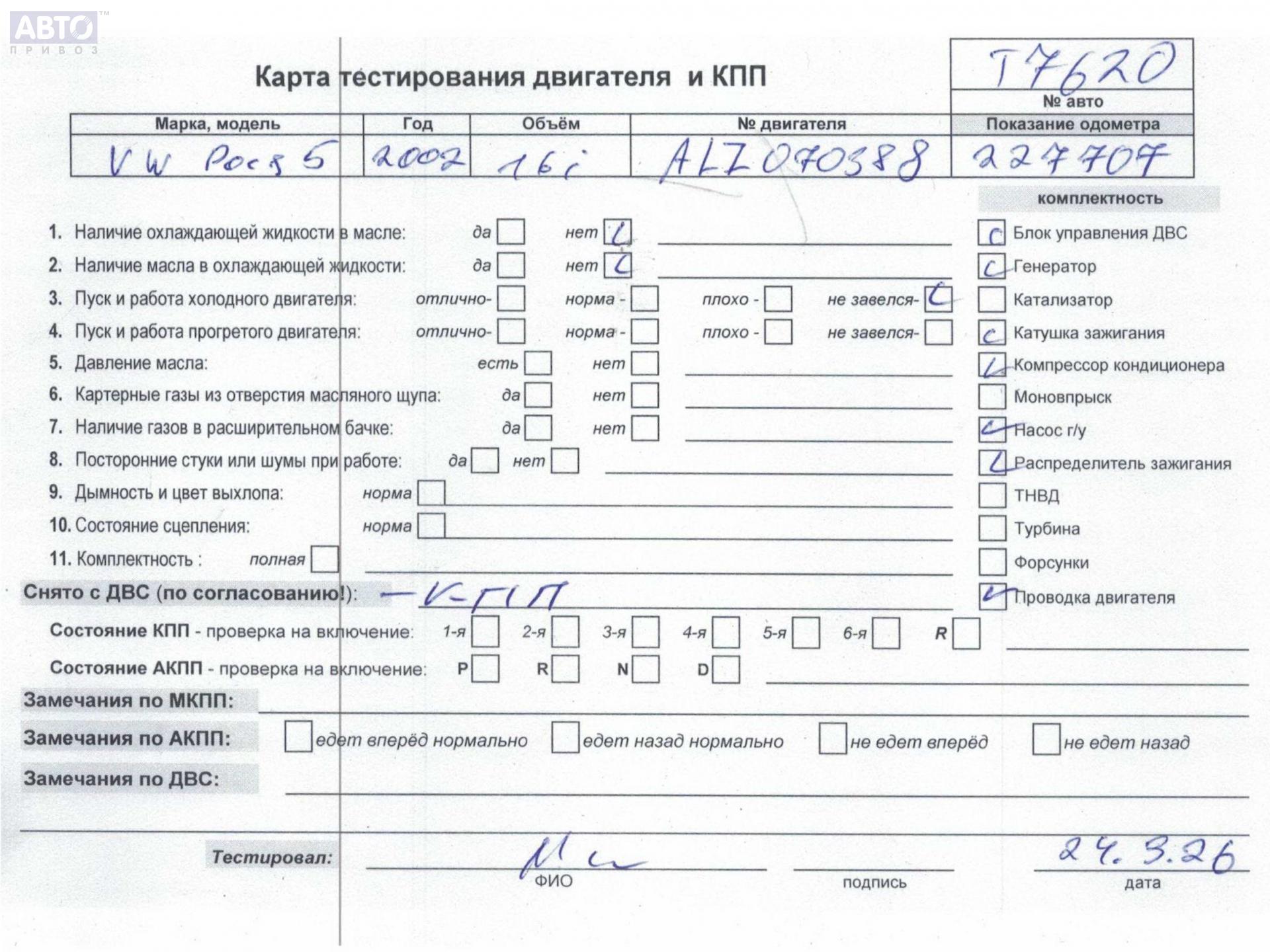 | Автомобиль / VIN: | T7620 WVWZZZ3BZ3P187316 |