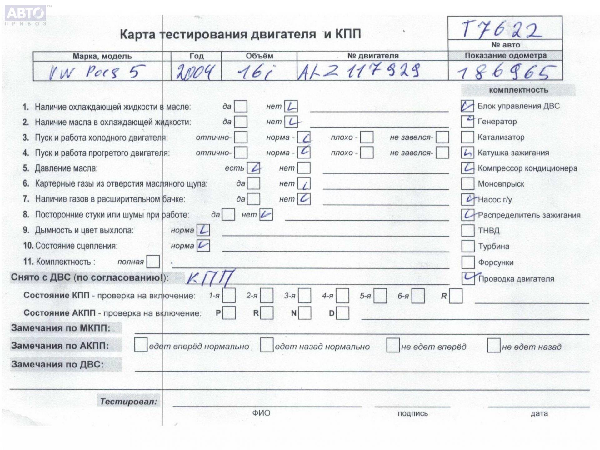 | Автомобиль / VIN: | T7622 WVWZZZ3BZ5E064415 |