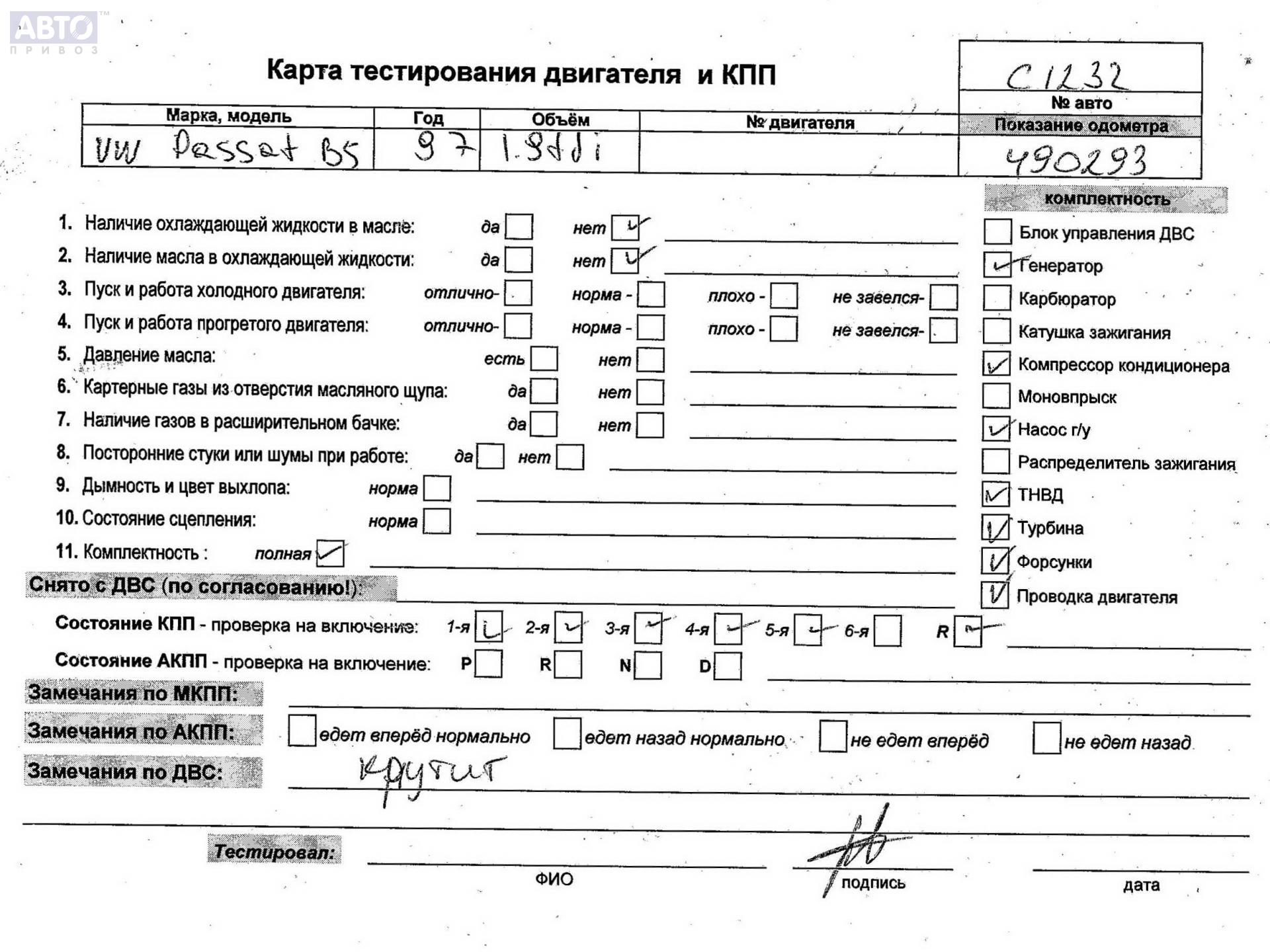 | Марка / Модель / Год: | Volkswagen Passat B5 1997 |