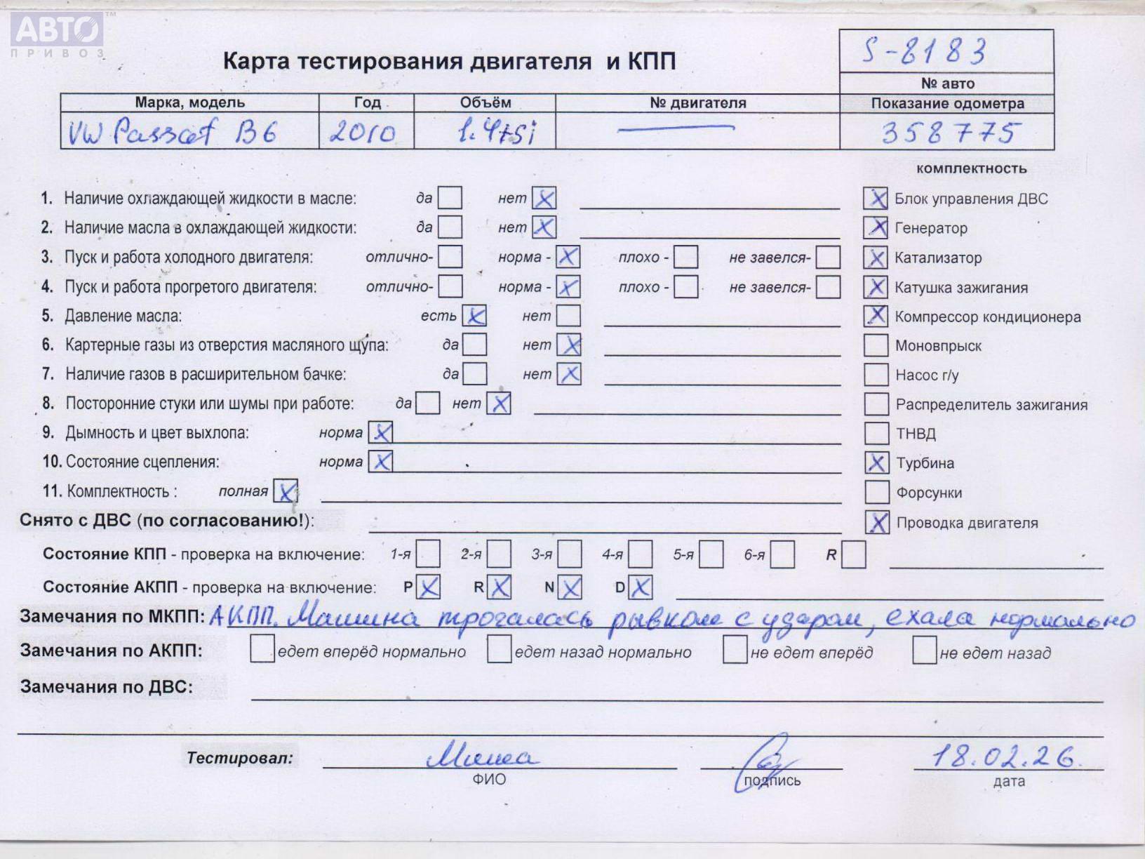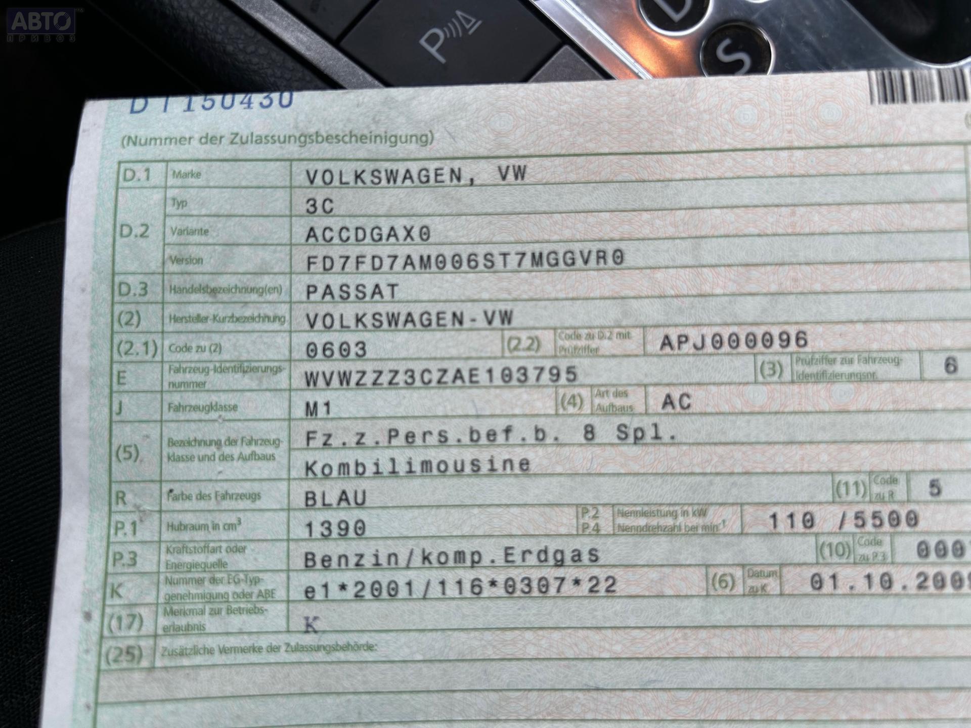 | Марка / Модель / Год: | Volkswagen Passat B6 2010 |