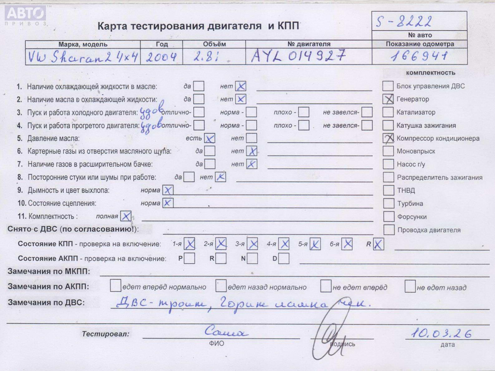 | Марка / Модель / Год: | Volkswagen Sharan (2000-2010) 2004 |