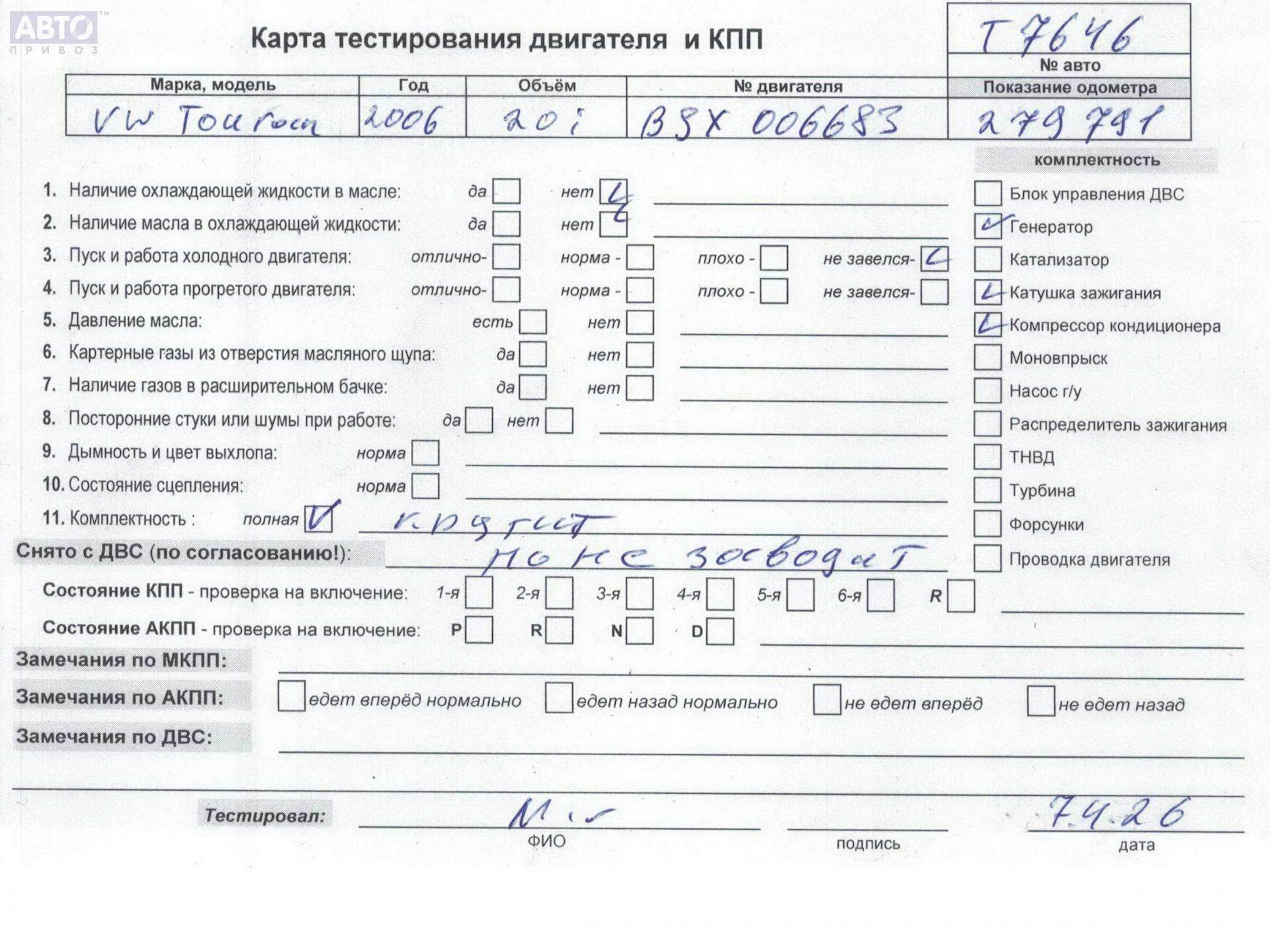 | Марка / Модель / Год: | Volkswagen Touran 2006 |