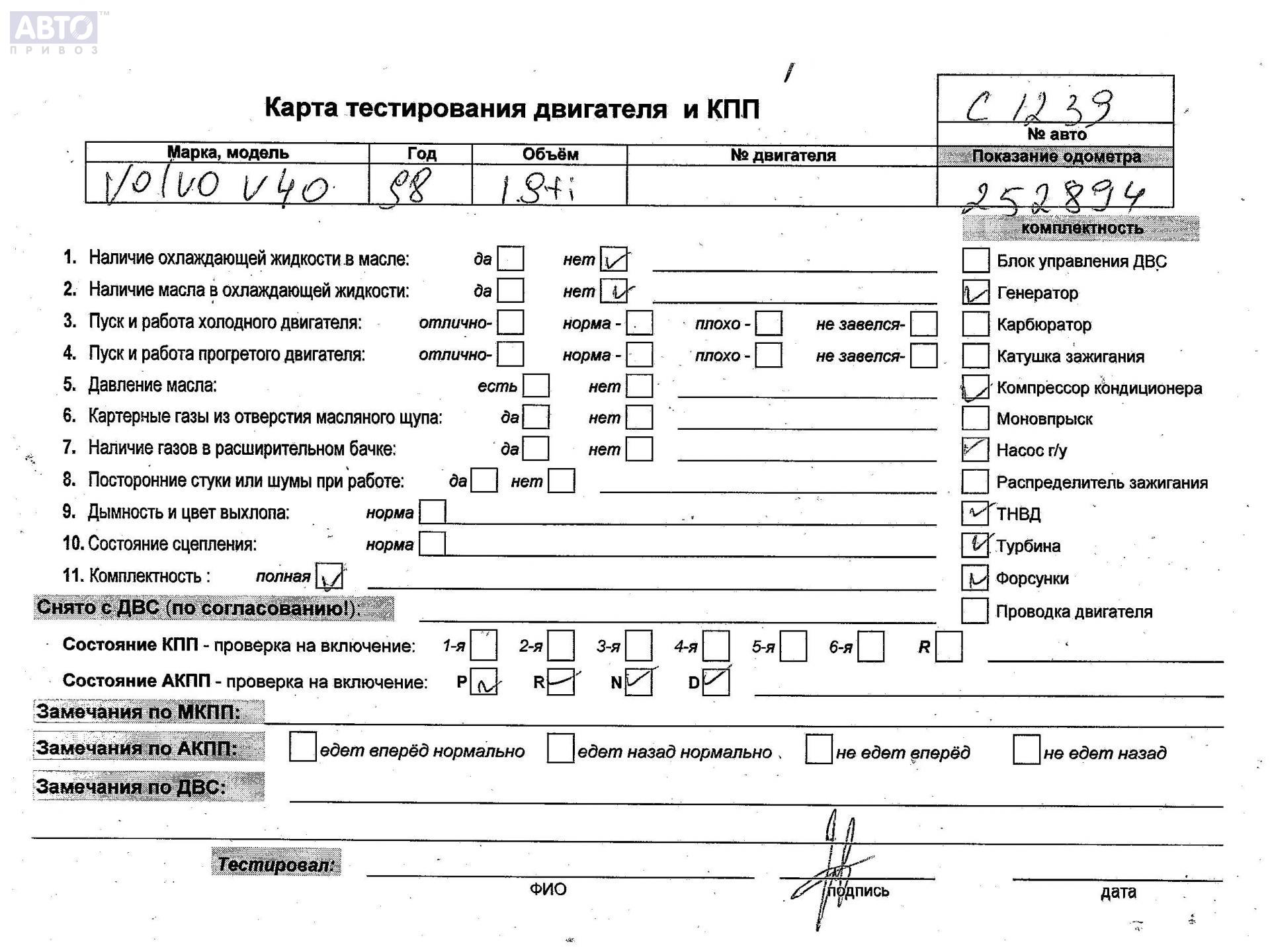 | Автомобиль / VIN: | C1239 YV1VW1826WF263974 |