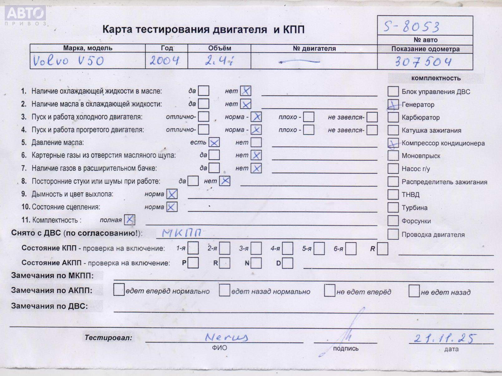 | Автомобиль / VIN: | S8053 YV1MW664252043612 |