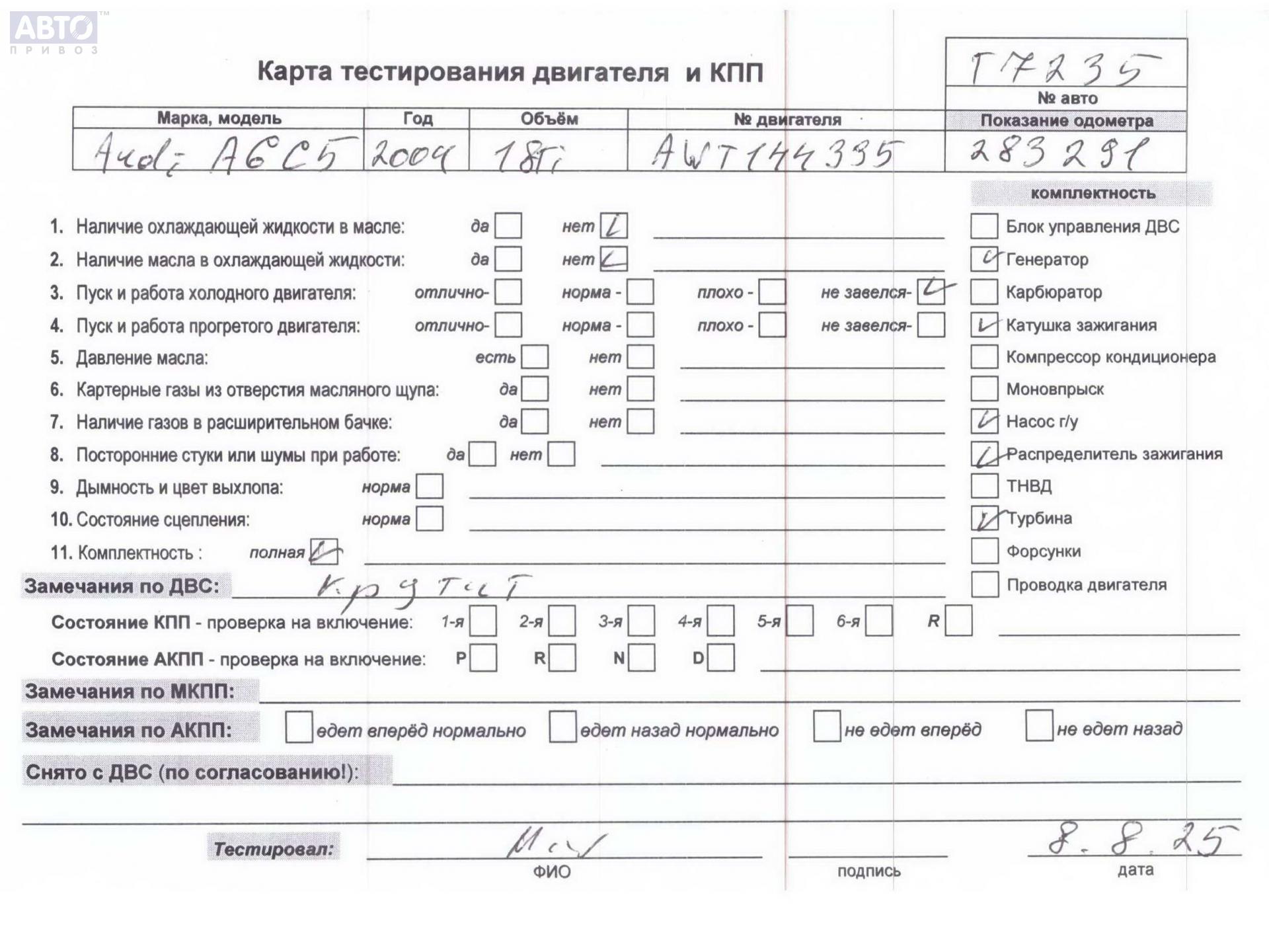 | Автомобиль / VIN: | T7235 WAUZZZ4B74N081856 |