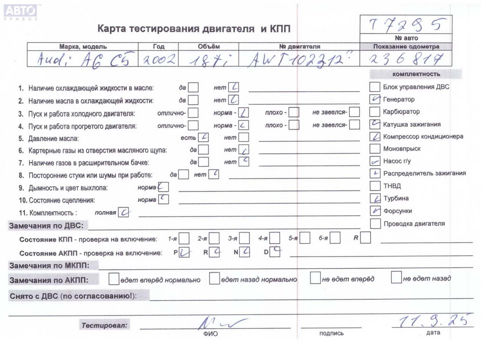 | Марка / Модель / Год: | Audi A6 C5 (1997-2005) 2002 |