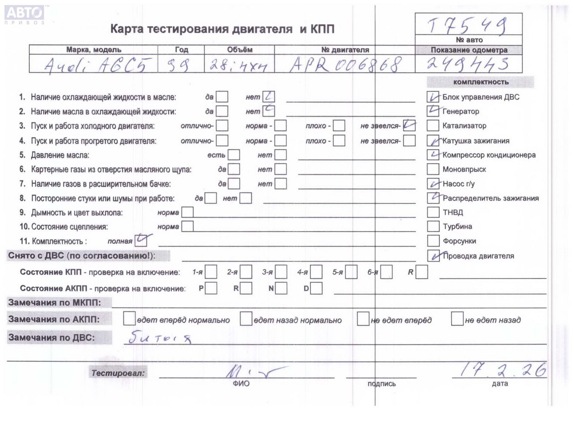 | Марка / Модель / Год: | Audi A6 C5 (1997-2005) 1999 |