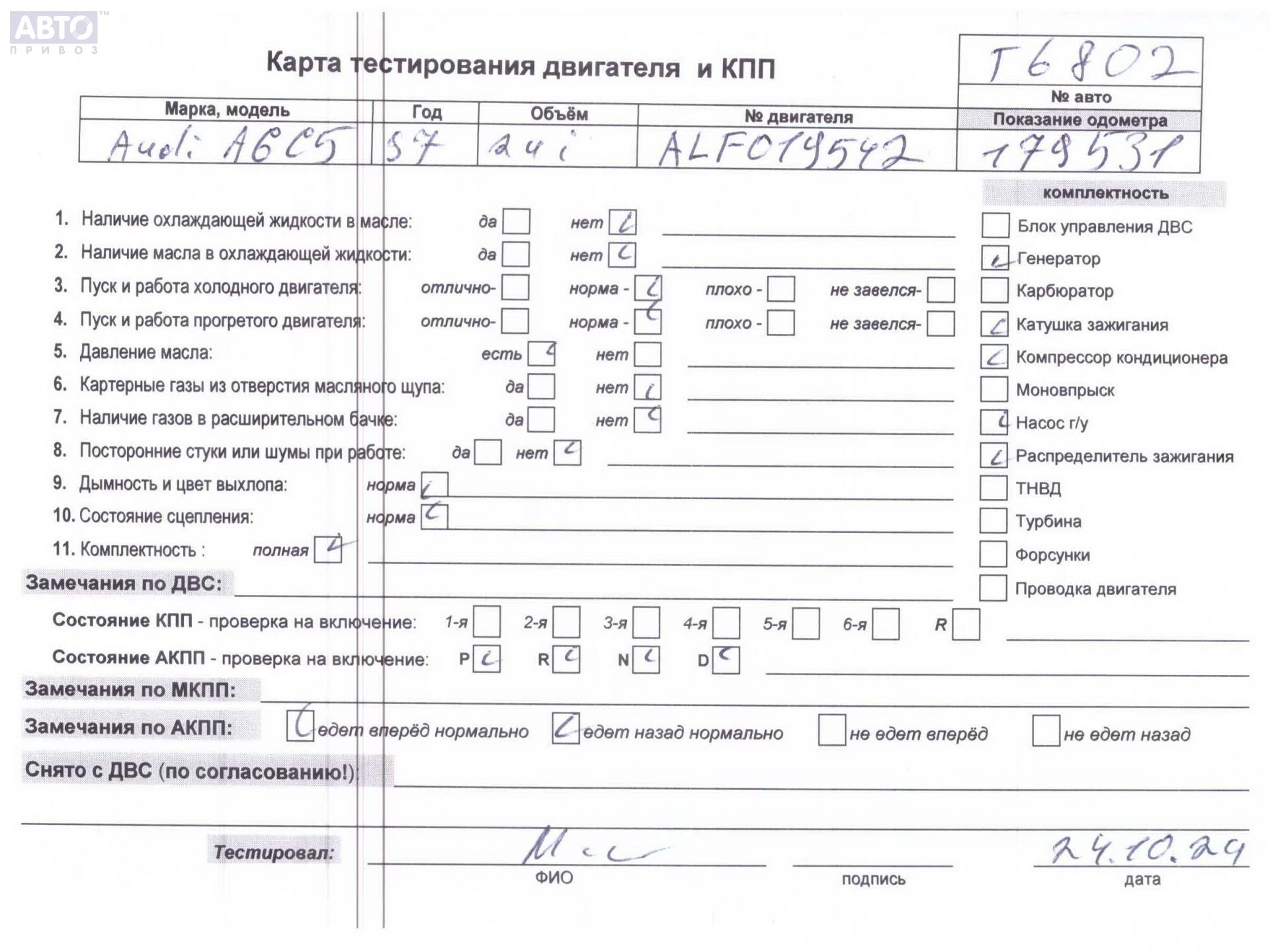 | Автомобиль / VIN: | T6802 WAUZZZ4BZWN079091 |