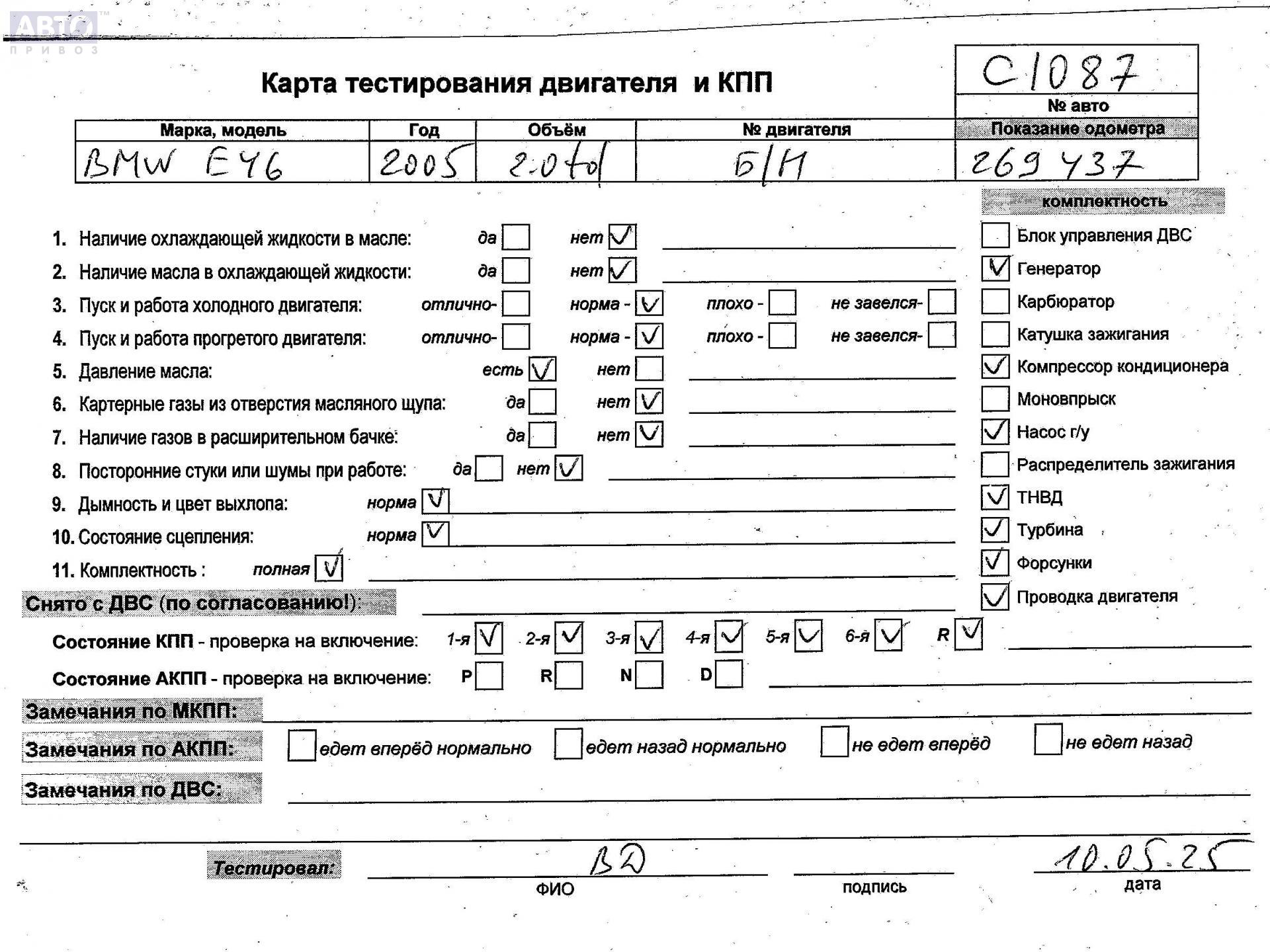 | Автомобиль / VIN: | C1087 WBAAP71020PP38930 |