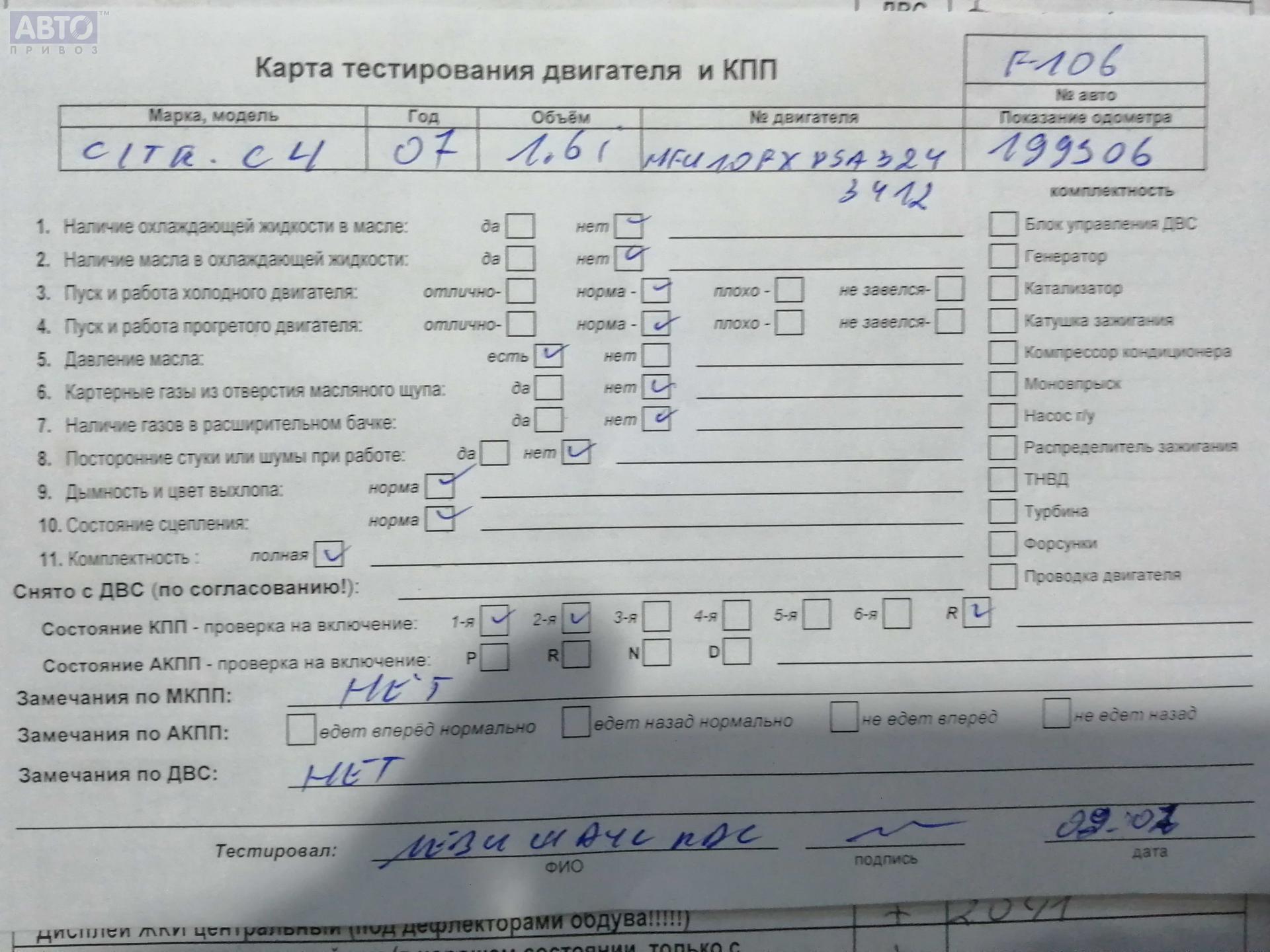 | Марка / Модель / Год: | Citroen C4 (2004-2010) 2007 |