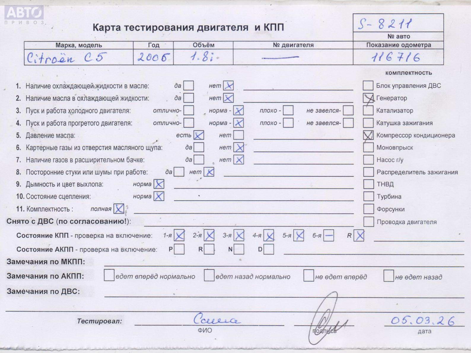 | Марка / Модель / Год: | Citroen C5 (2001-2008) 2006 |