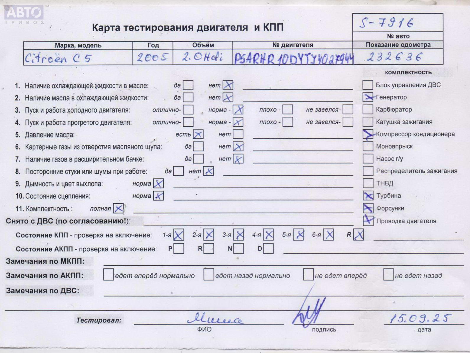 | Марка / Модель / Год: | Citroen C5 (2001-2008) 2005 |