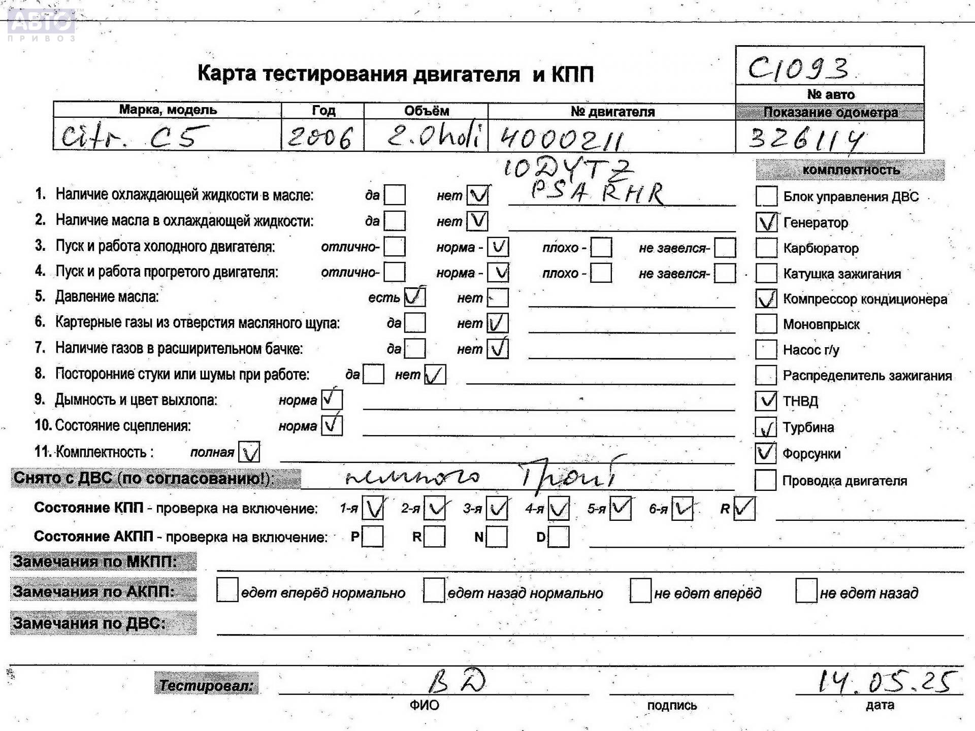 | Марка / Модель / Год: | Citroen C5 (2001-2008) 2006 |