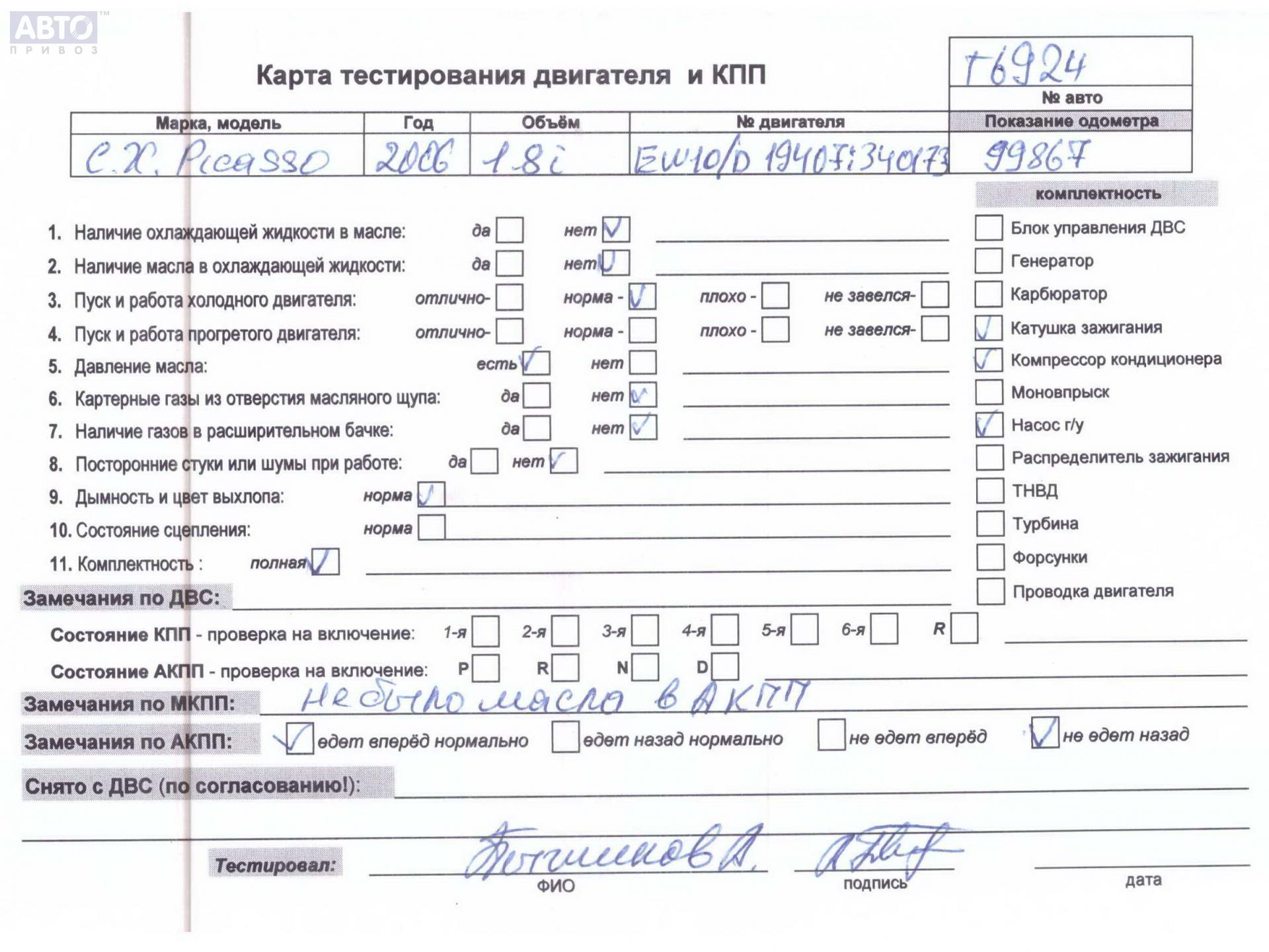 | Марка / Модель / Год: | Citroen Xsara Picasso 2006 |