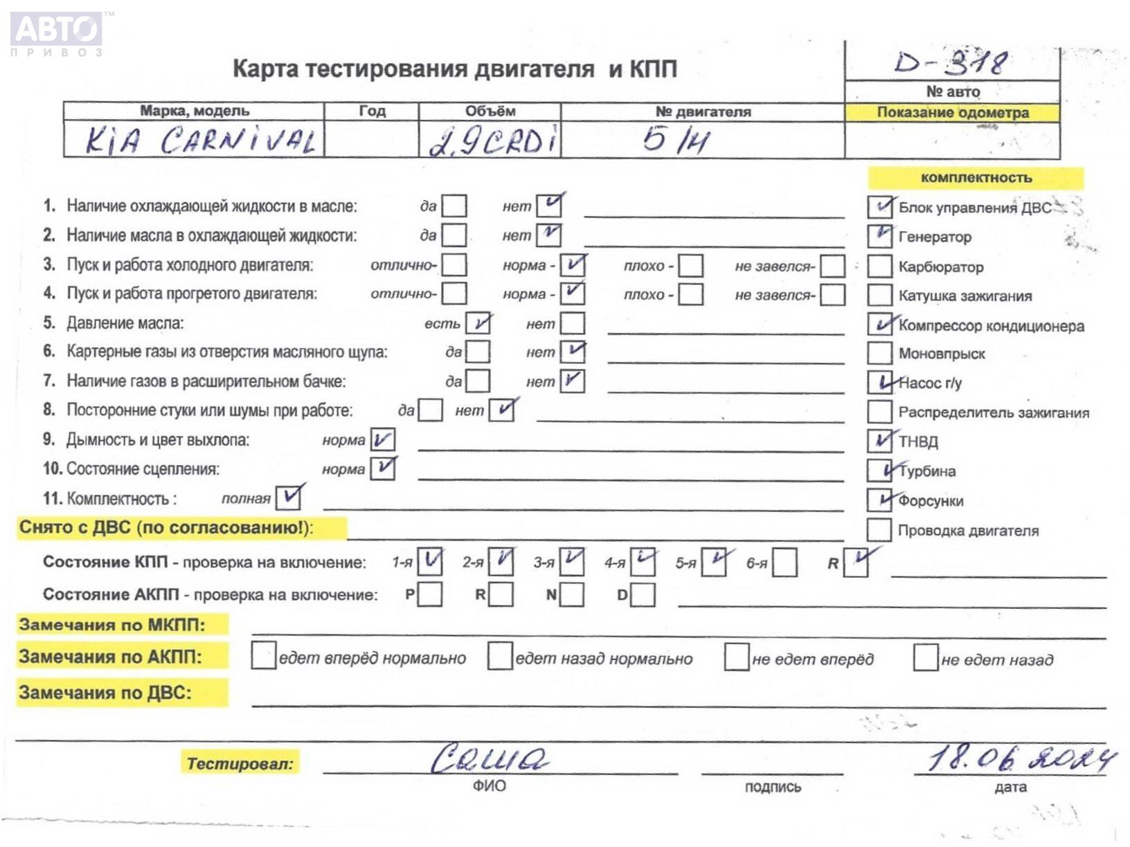 | Марка / Модель / Год: | Kia Carnival 2007 |