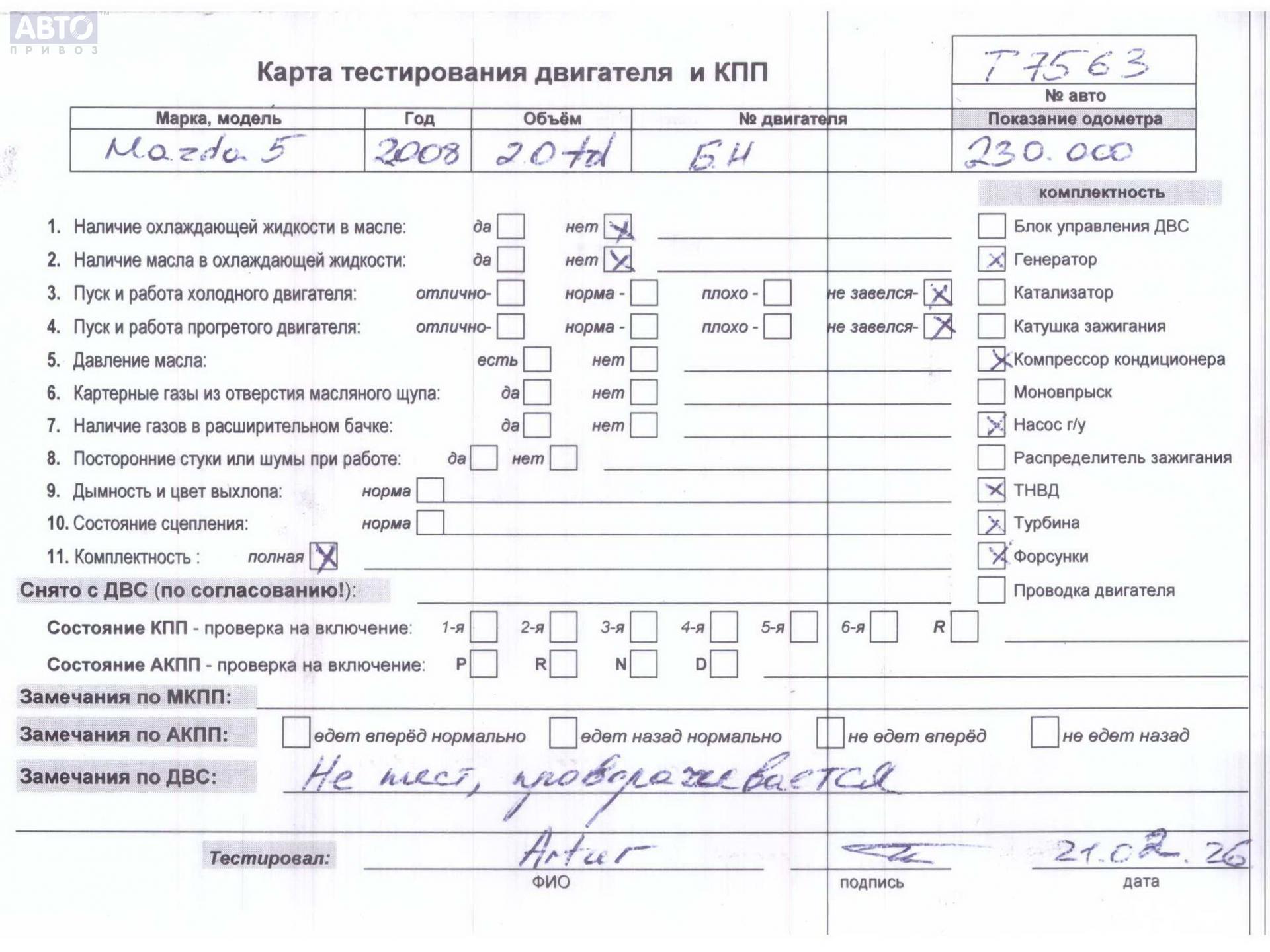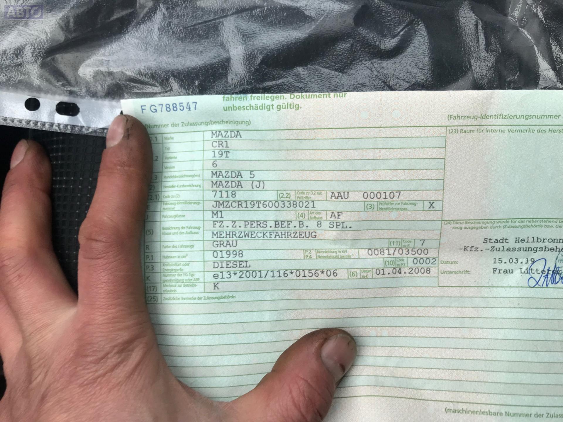 | Марка / Модель / Год: | Mazda 5 2008 |