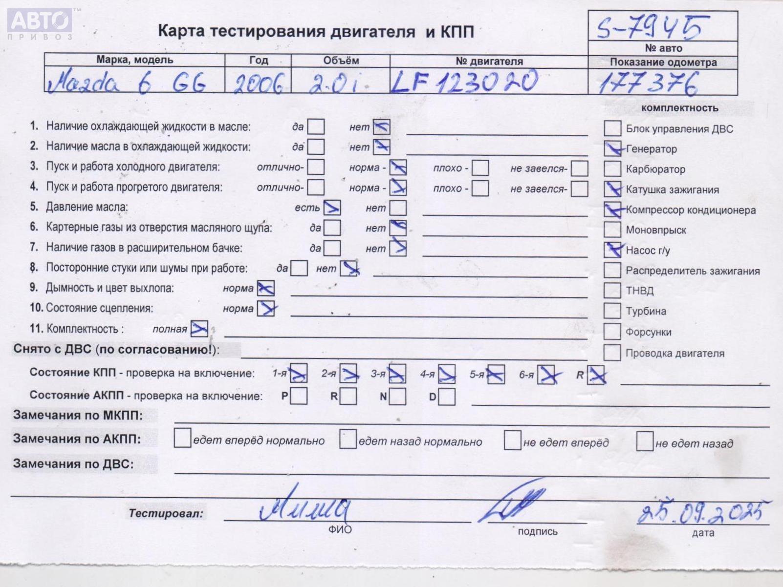 | Марка / Модель / Год: | Mazda 6 (2002-2007) GG/GY 2006 |