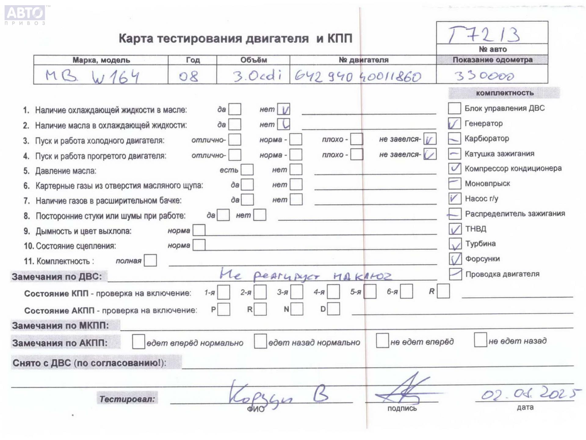 | Автомобиль / VIN: | T7213 WDC1641201A036117 |