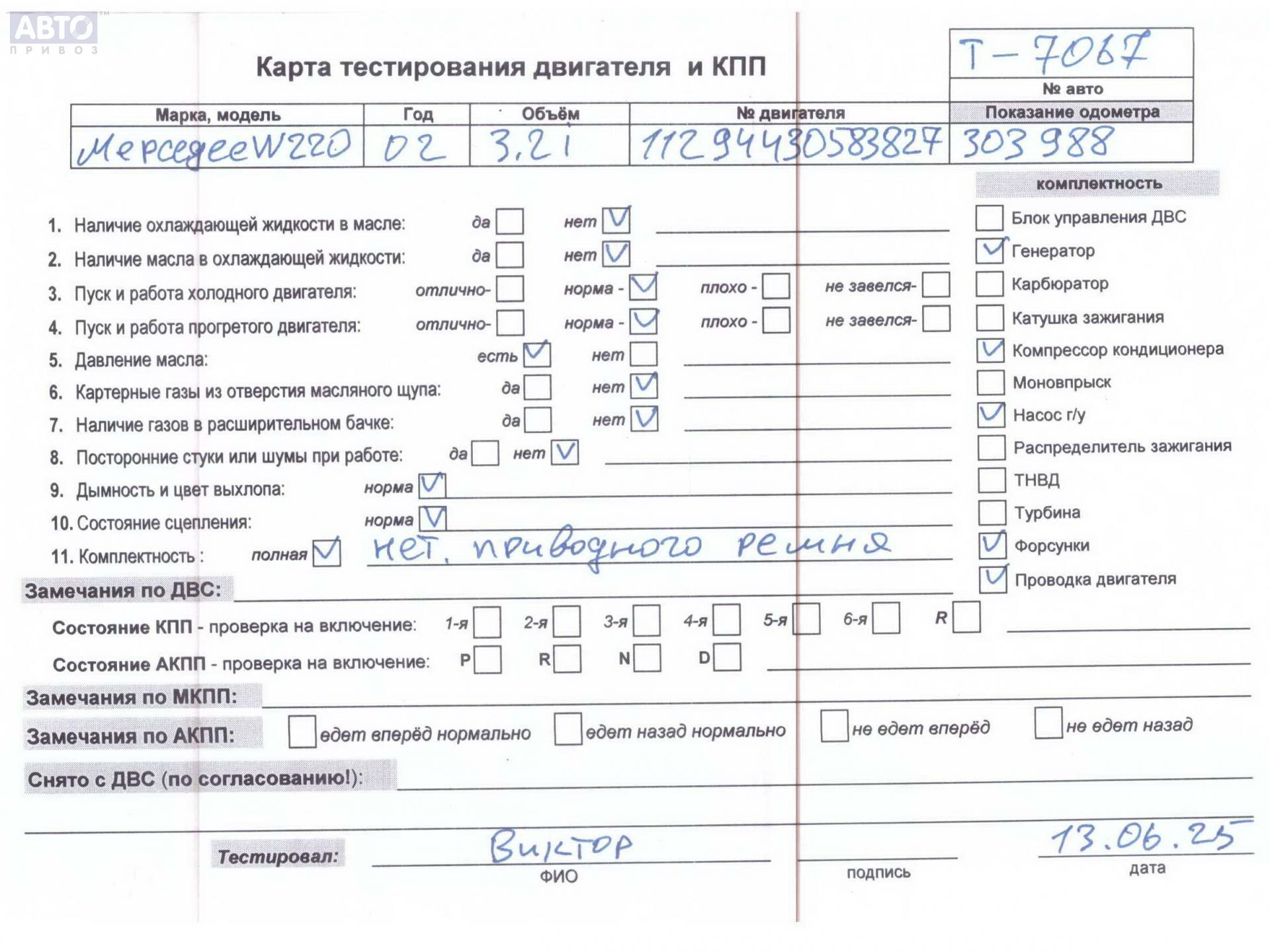 | Автомобиль / VIN: | T7067 WDB2200651A078674 |