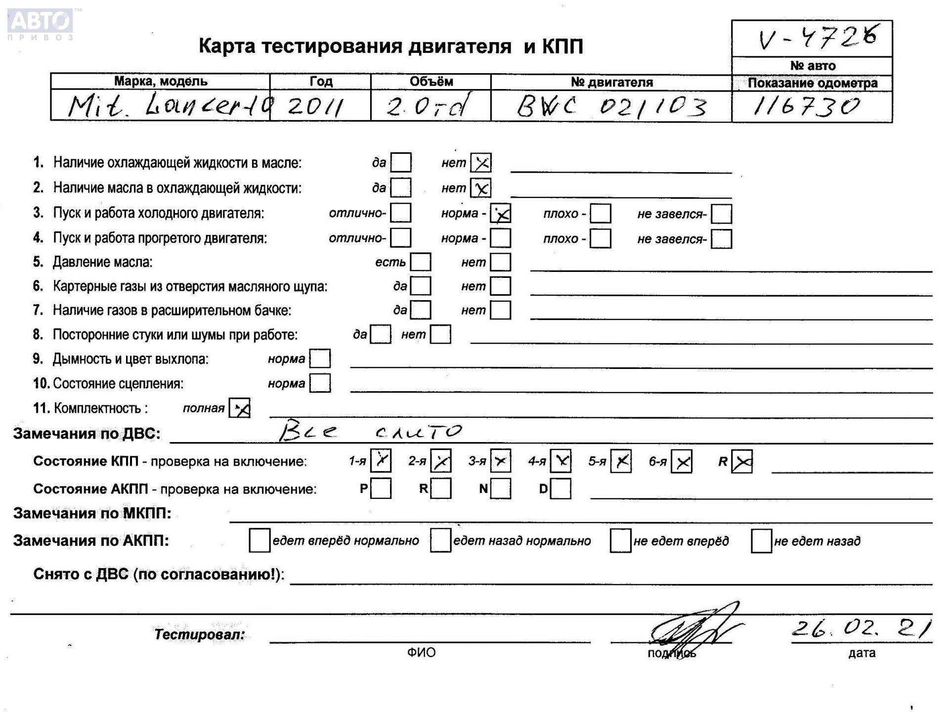 | Марка / Модель / Год: | Mitsubishi Lancer (X, 2007-2017) 2010 |
