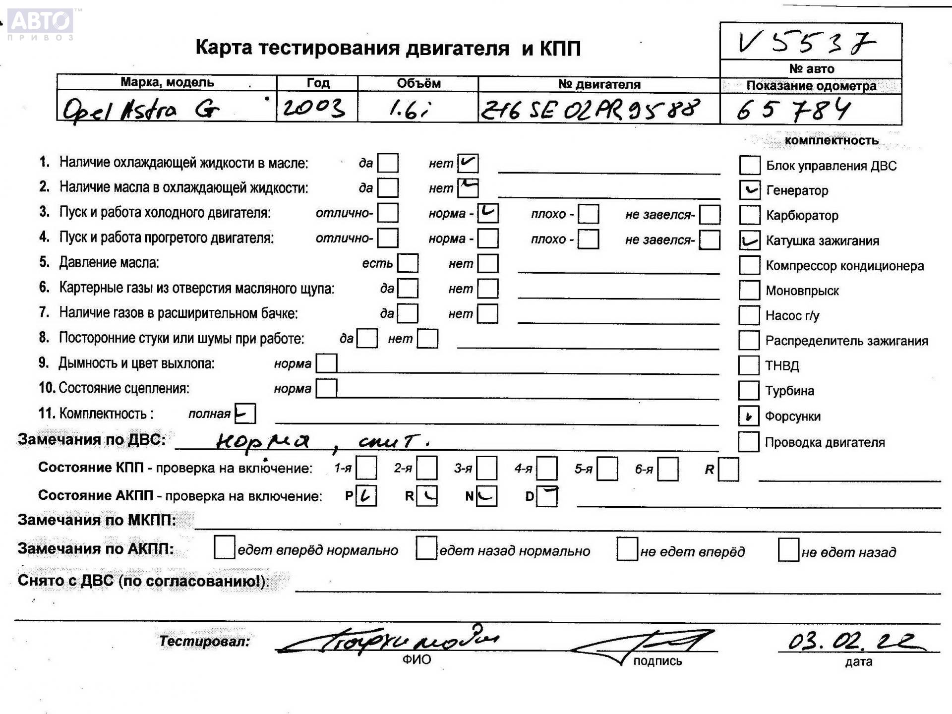 | Марка / Модель / Год: | Opel Astra G (1998-2004) 2003 |