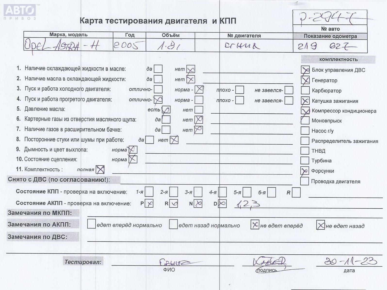 | Марка / Модель / Год: | Opel Astra H (2004-2009) 2005 |