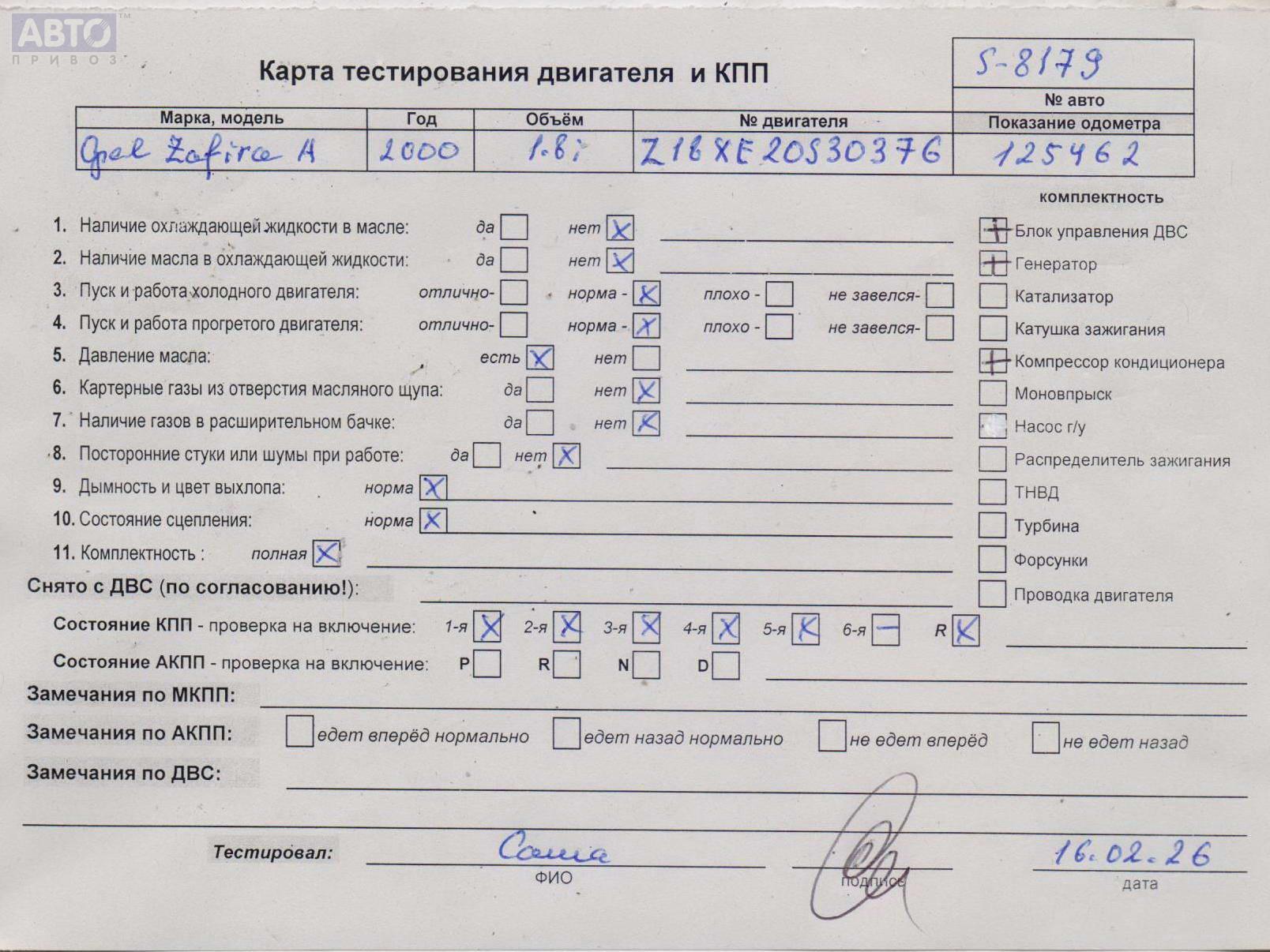 | Марка / Модель / Год: | Opel Zafira A (1999-2005) 2000 |