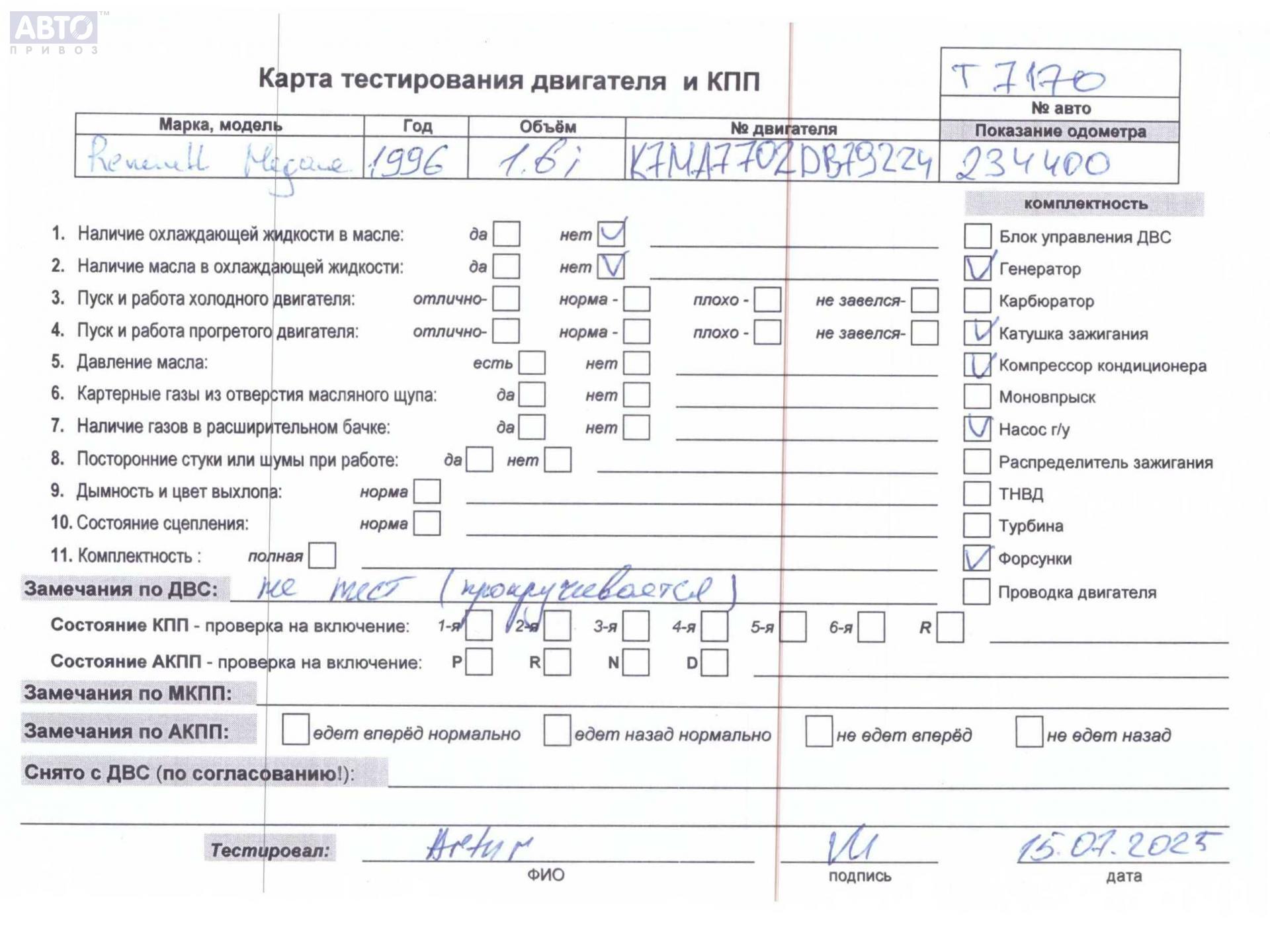 | Автомобиль / VIN: | T7170 VF1BA0F0F15766135 |