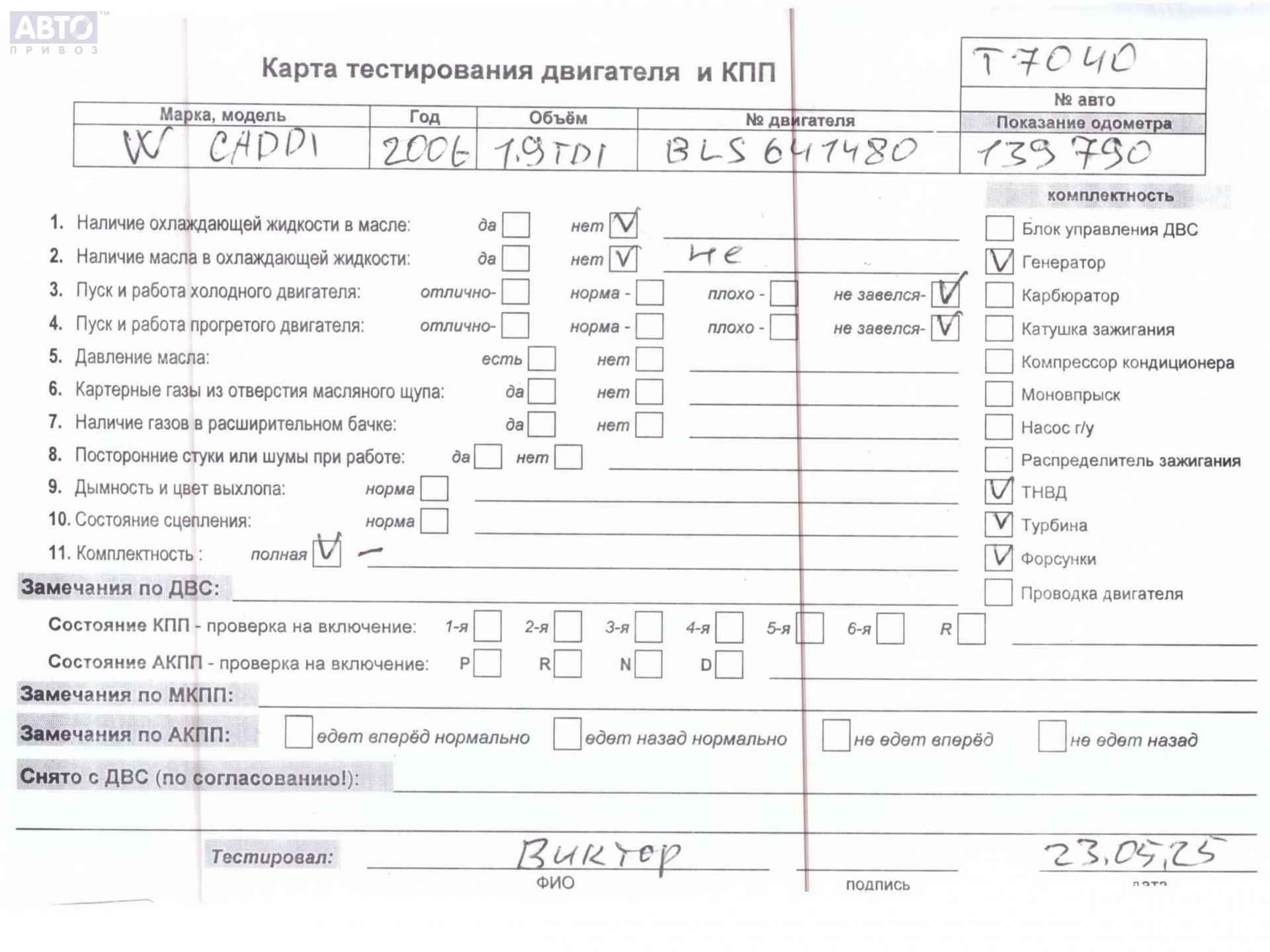 | Марка / Модель / Год: | Volkswagen Caddy (2004-2010) 2006 |