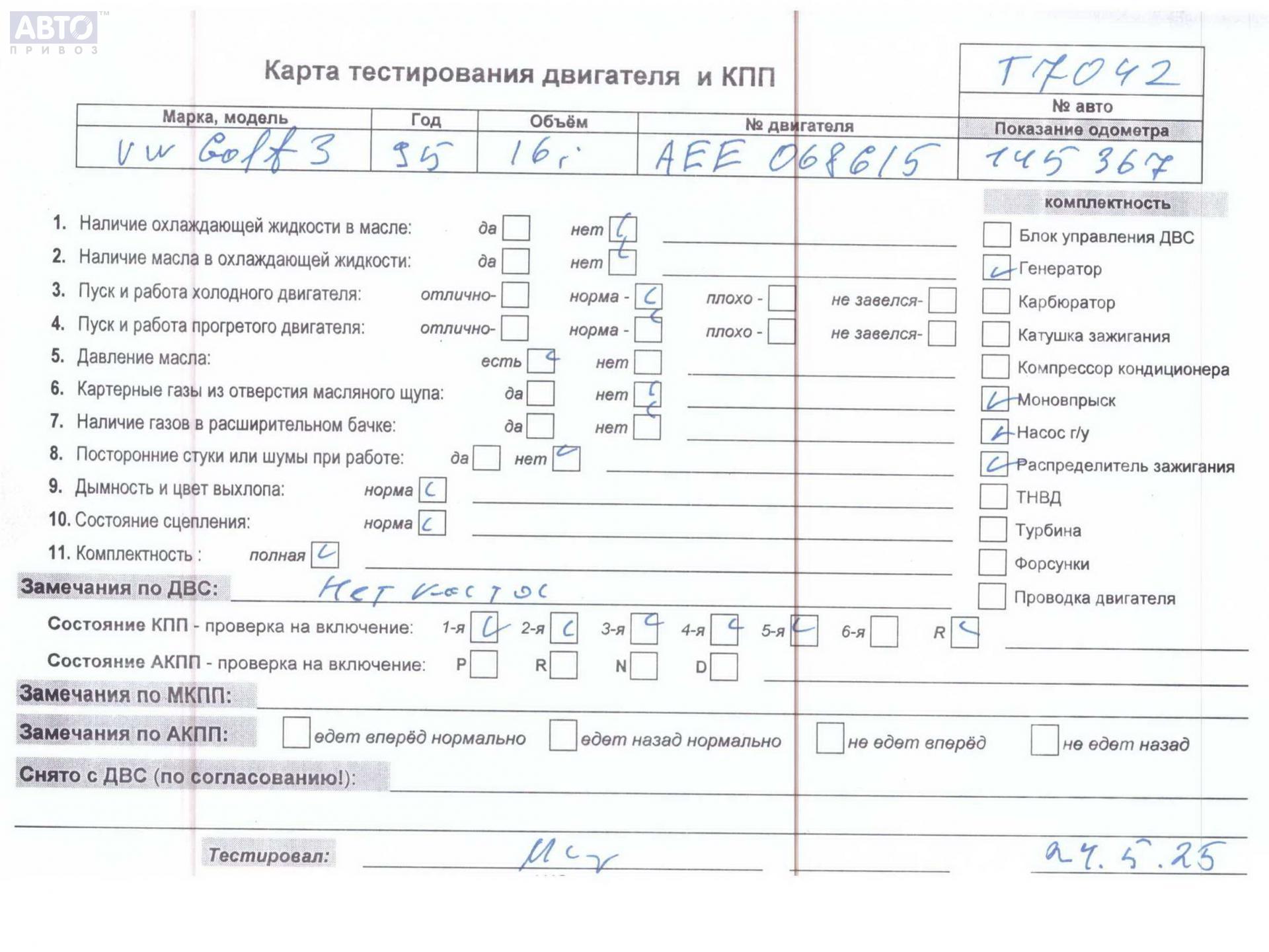 | Марка / Модель / Год: | Volkswagen Golf-3 1995 |