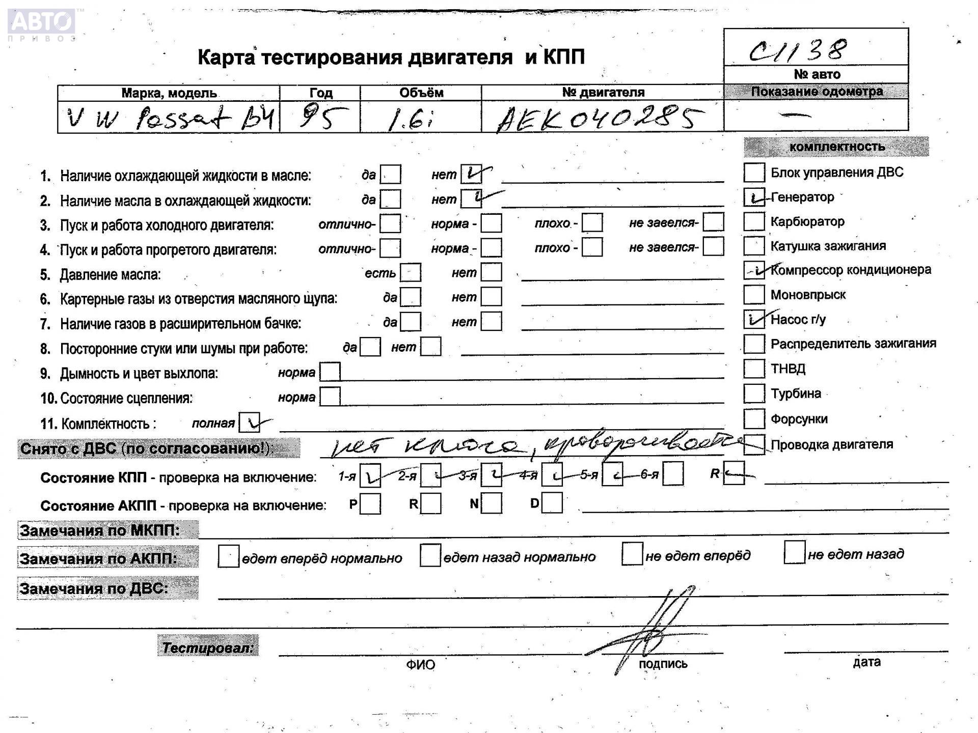 | Марка / Модель / Год: | Volkswagen Passat B4 1995 |