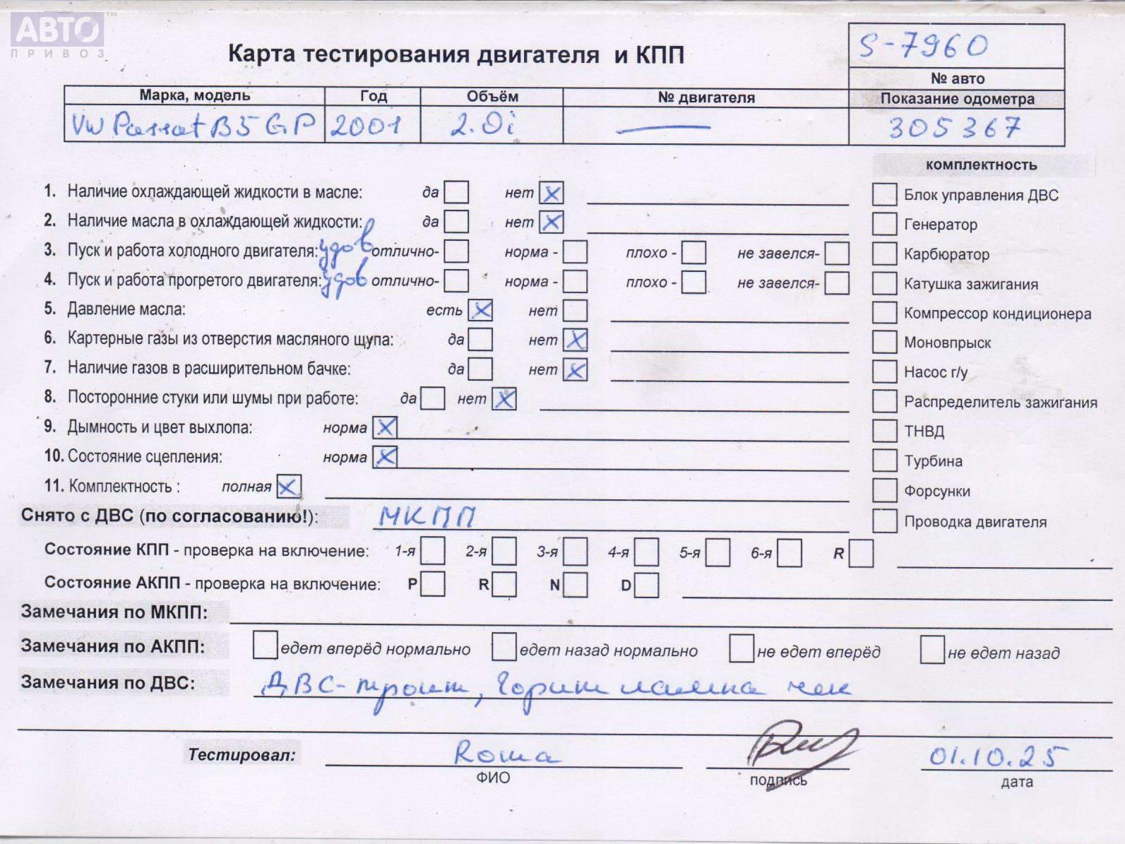 | Марка / Модель / Год: | Volkswagen Passat B5+ (GP) 2001 |