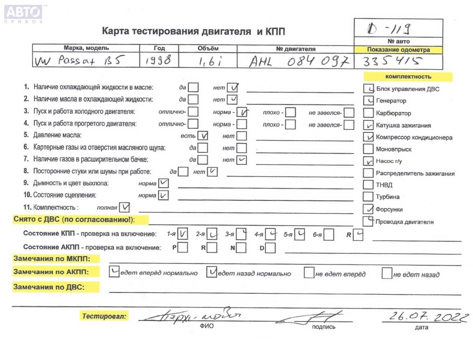 | Марка / Модель / Год: | Volkswagen Passat B5 1997 |