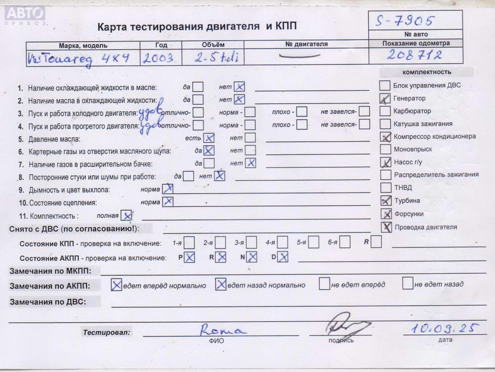 | Марка / Модель / Год: | Volkswagen Touareg 2003 |