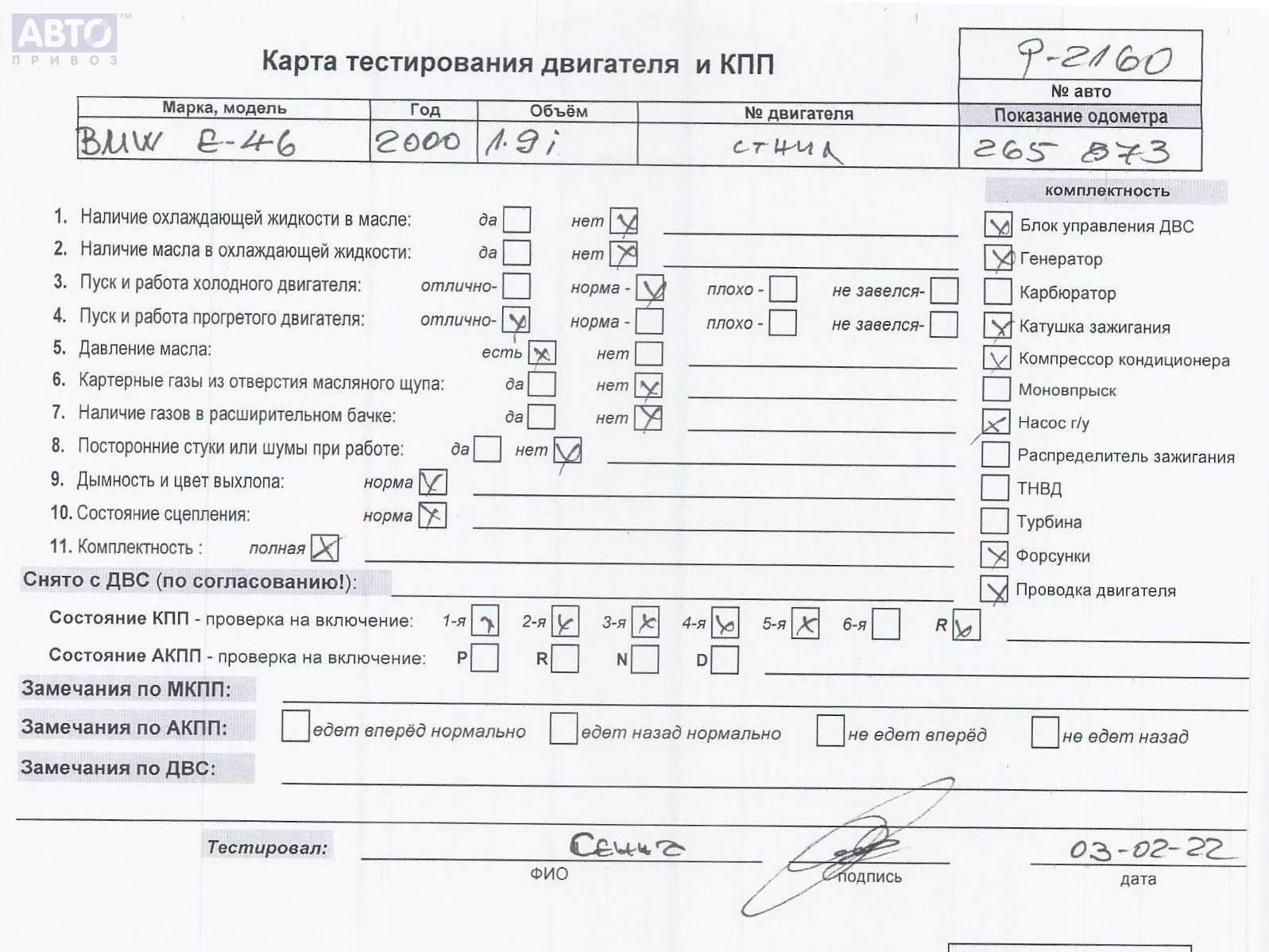| Марка / Модель / Год: | BMW 3 E46 (1998-2006) 2000 |