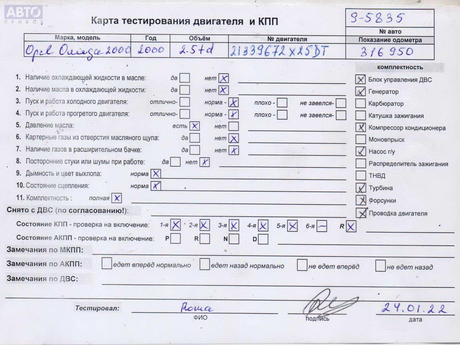 | Марка / Модель / Год: | Opel Omega B (1994-2003) 2000 |