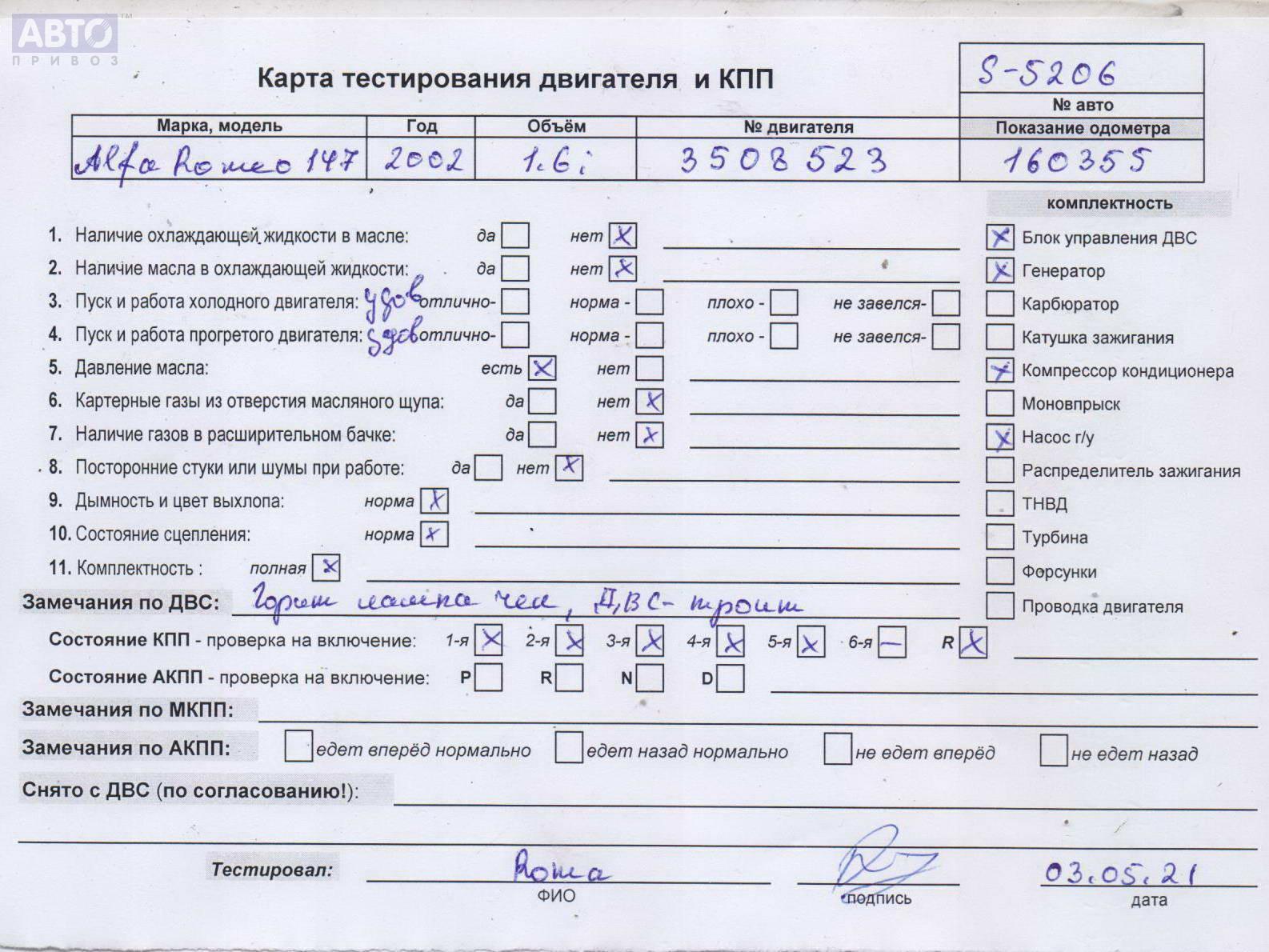 | Марка / Модель / Год: | Alfa Romeo 147 2002 |