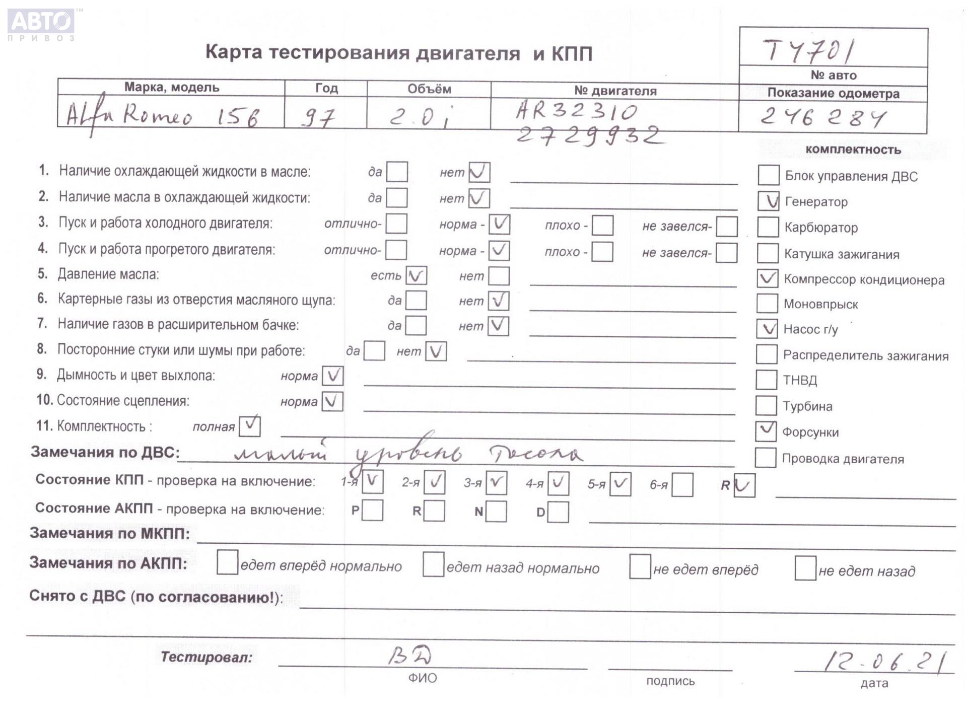 | Марка / Модель / Год: | Alfa Romeo 156 1997 |