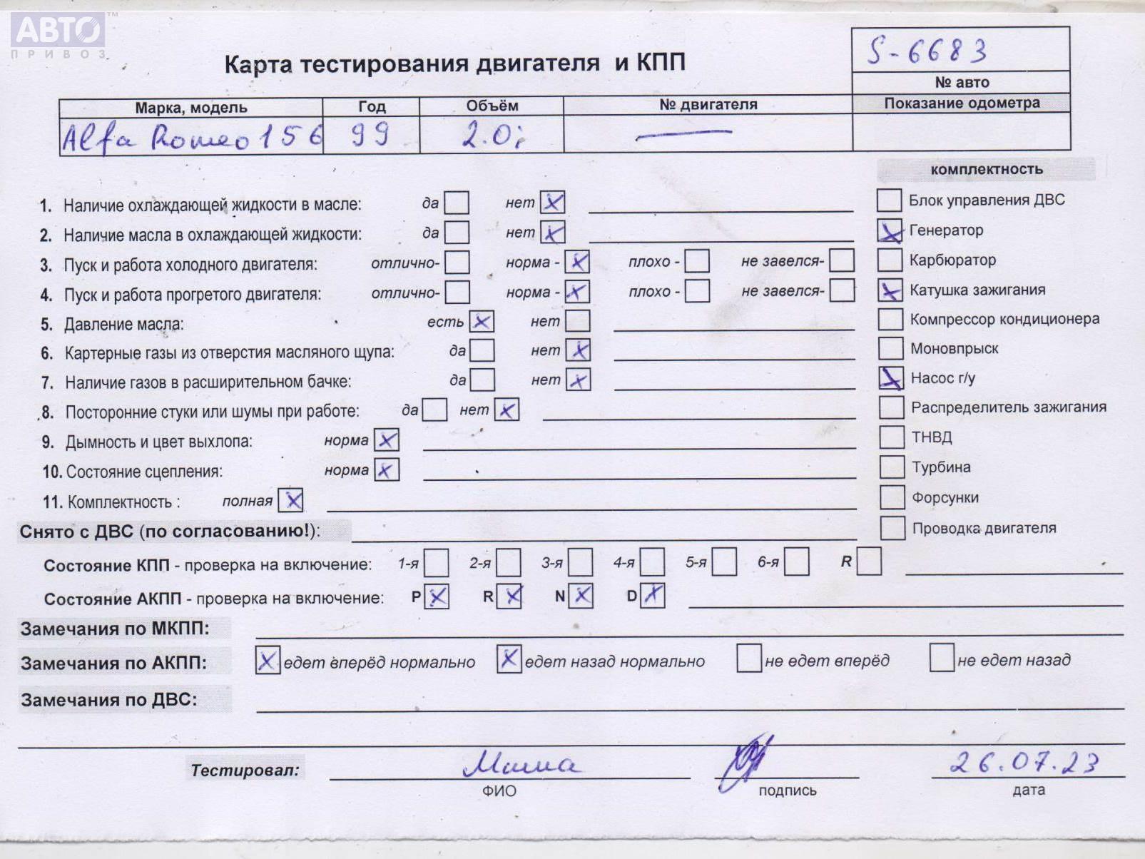 | Марка / Модель / Год: | Alfa Romeo 156 1999 |