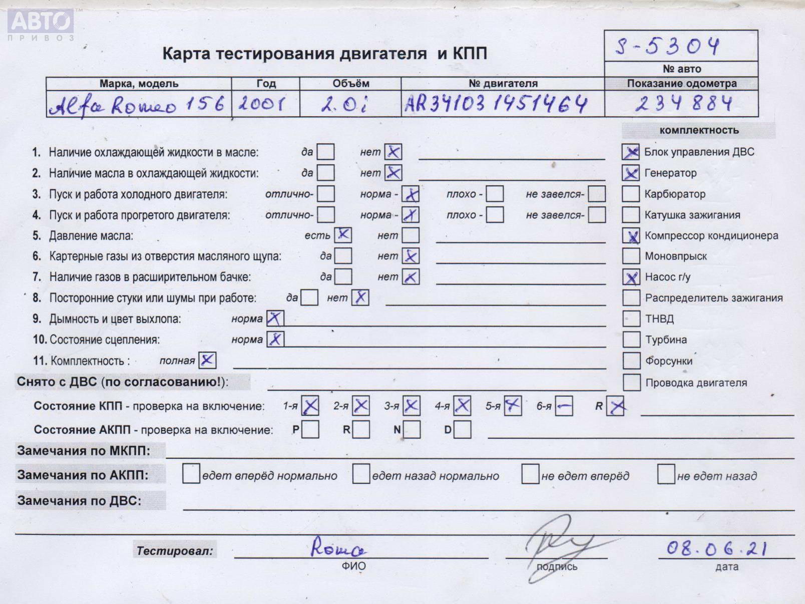 | Марка / Модель / Год: | Alfa Romeo 156 2001 |