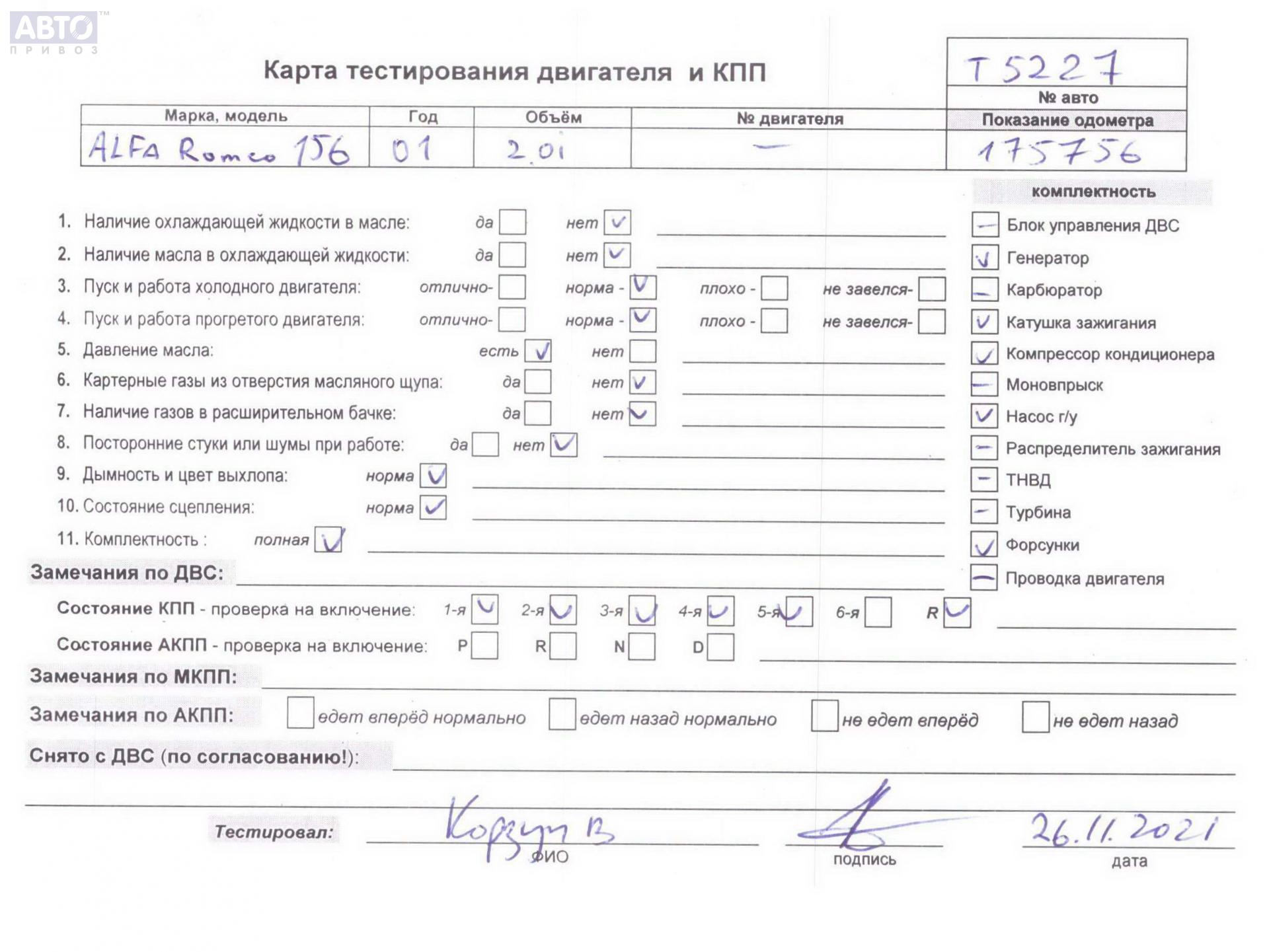 | Марка / Модель / Год: | Alfa Romeo 156 2001 |