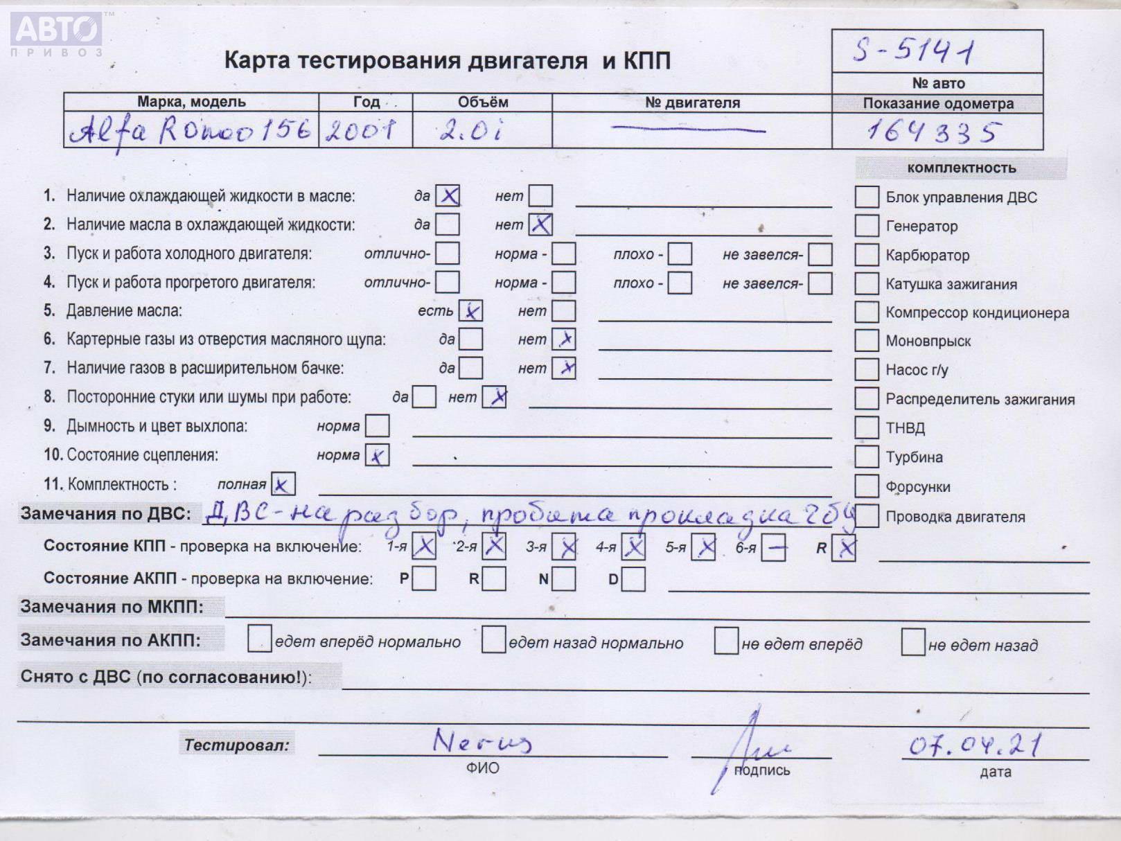 | Марка / Модель / Год: | Alfa Romeo 156 2001 |