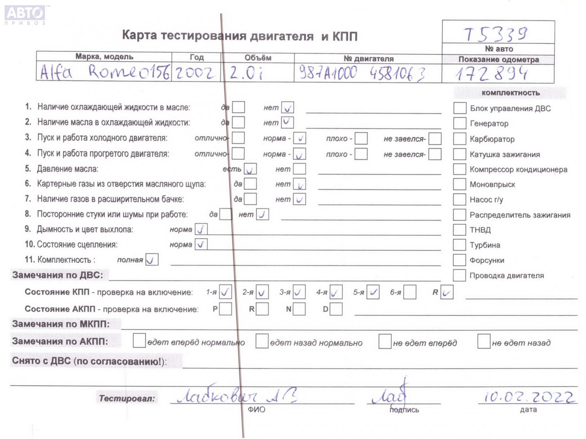 | Марка / Модель / Год: | Alfa Romeo 156 2005 |