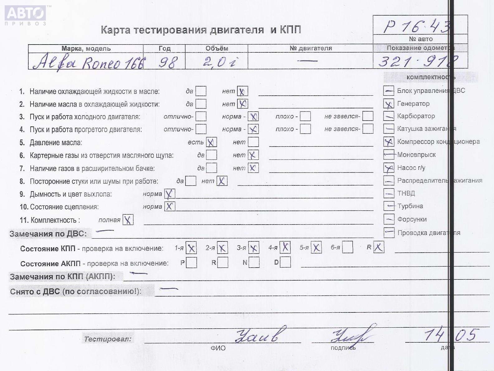 | Автомобиль / VIN: | P1643 ZAR93600000007623 |