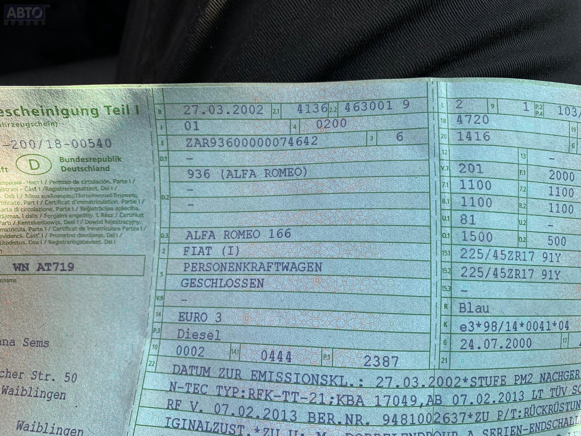 | Марка / Модель / Год: | Alfa Romeo 166 2002 |