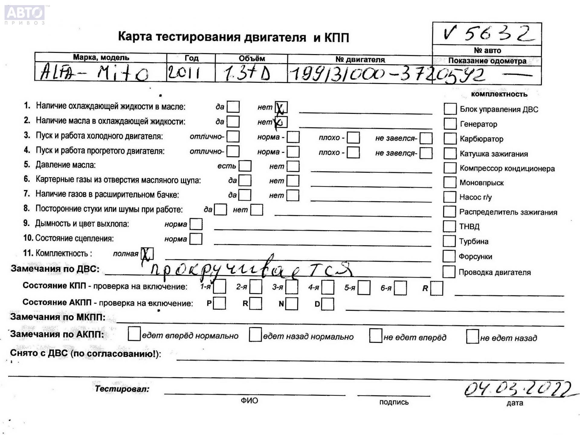 | Марка / Модель / Год: | Alfa Romeo MiTo 2010 |