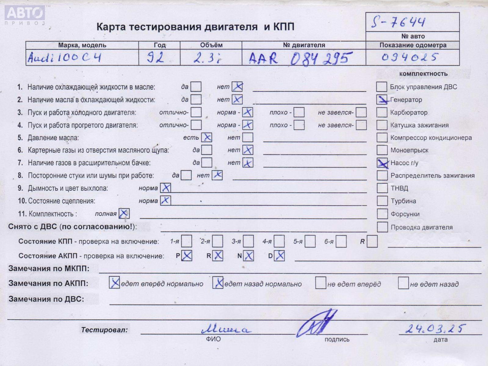 | Марка / Модель / Год: | Audi 100 C4 (1991-1994) 1992 |