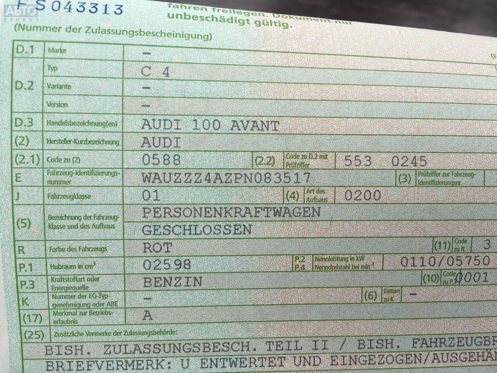 | Марка / Модель / Год: | Audi 100 C4 (1991-1994) 1993 |