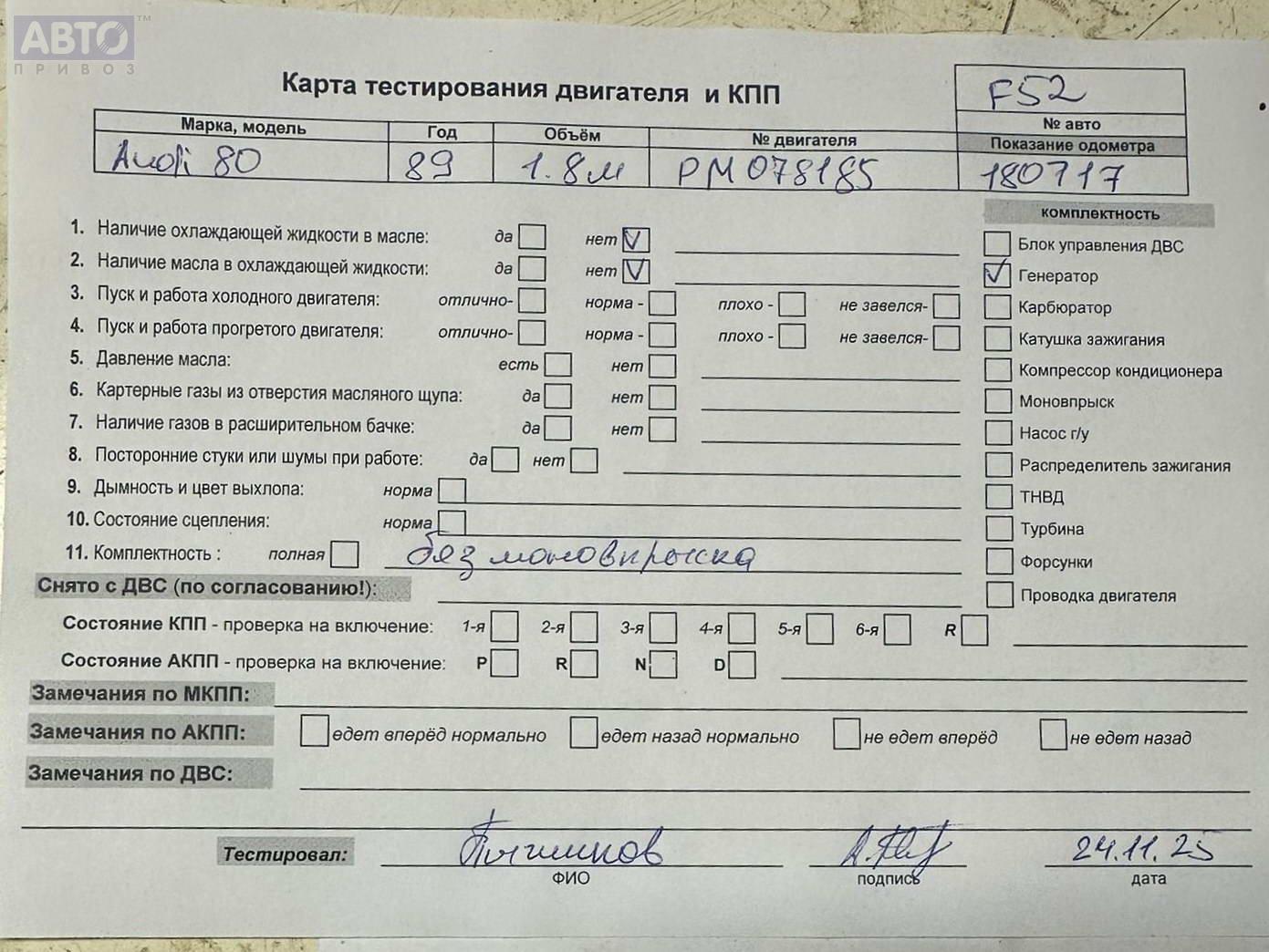 | Марка / Модель / Год: | Audi 80 B3 (1987-1992) 1989 |